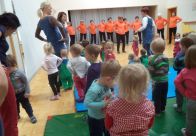 V Vrtcu Medo v Lukovici je bilo danes dopoldan pravo medgeneracijsko druženje, saj so otroke in vzgojiteljice obiskale pevke Pevske skupine Šole zdravja Domžale, ki so jim pripravile zanimiv program. Po besedah zborovodkinje Pevske skupine Društva Šola zdravja, Marike Haler, so imele pevke v tem vrtcu danes dva nastopa, kjer so pele, telovadile in skupaj z otroci tudi zaplesale. Skupaj z otroci pa so zapele tudi pesem Mi se imamo radi. S petjem, plesom in telovadbo so razvedrile kar 250 otrok. »V prvi skupini je bilo 100 otrok starih do 3 leta, program pa je trajal 25 minut. V drugi skupini, ki je štela 150 otrok od 4 do 6 let in dva oddelka prvega razreda tamkajšnje osnovne šole, pa so program razširile na 45 minut. Se pravi, da je bilo več petja in več telovadbe«, nam pove Marika in doda: »Najlepša hvala otrokom in vzgojiteljicam za prijetno druženje.«