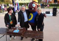 Proti koncu prireditve so prinesli veliko torto, v katero je župan Toni Dragar v družbi hroščka Simona in obeh podžupanj, mag. Renate Kosec in mag. Jane Miklavčič naredil prvi rez, zatem pa so torto razdelili med obiskovalce in nastopajoče v Češminovem parku.