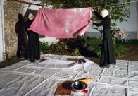 Performans, ki sta ga izvedli umetnici Miša Gams in Jatun Risba, v svojih elementih govori o starih šegah, kot je objokovanje umrlega, pranje in obešanje neožetih rjuh, na katerih je umrl pokojnik, da je iz njih odtekala voda; prikazali sta tudi bedenje ob pokojniku, kropljenje z blagoslovljeno vodo in soljo ter še nekaj posebnih običajev, ki so značilni za posamezne slovenske pokrajine. Performans sta umetnici izvedli zunaj, v atrijskem dvorišču, kjer je uprizoritev lepo dopolnjeval lunin krajec nad kamniškimi strehami.