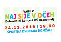 V Športni dvorani v Domžalah bo v četrtek, 24. novembra 2016, sijalo v očeh, saj bo potekal dobrodelni koncert Osnovne šole Dragomelj, ki so ga poimenovali »Naj sije v očeh«, na njem pa bodo nastopila velika glasbena imena. Izkupiček dobrodelnega koncerta pa bo namenjen otrokom iz socialno ogroženega okolja, učenju otrok v zdravem življenjskem okolju, šolskemu skladu in prispevku za izgradnjo dvigala.
