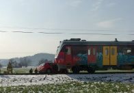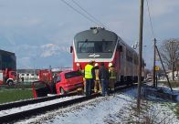 V Zgornjih Jaršah potniški vlak trčil v osebni avto