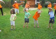 Na koncu telovadbe je sledil še Pozdrav soncu in pa njihova himna za lepši dan, ki mi že dobro poznamo in jo prepevamo tudi v vrtcu. Gre pa takole: »Vem, da danes bo srečen dan, to sem začutil že zjutraj, zagotovo danes bo srečen dan, tudi to se zgodi. Vedno zjutraj razgibam se, da Domžale zbudijo se, tisoč gibov, da nisi bolan, sonce, oj dober dan.«