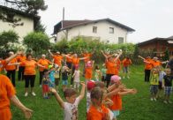 Večkrat smo slišali, kako pomembno je gibanje za naše zdravje. V naši skupini smo se trudili, da smo se vsak dan razgibali pred zajtrkom, na željo otrok pa smo zapeli še himno in pozdravili sonce.