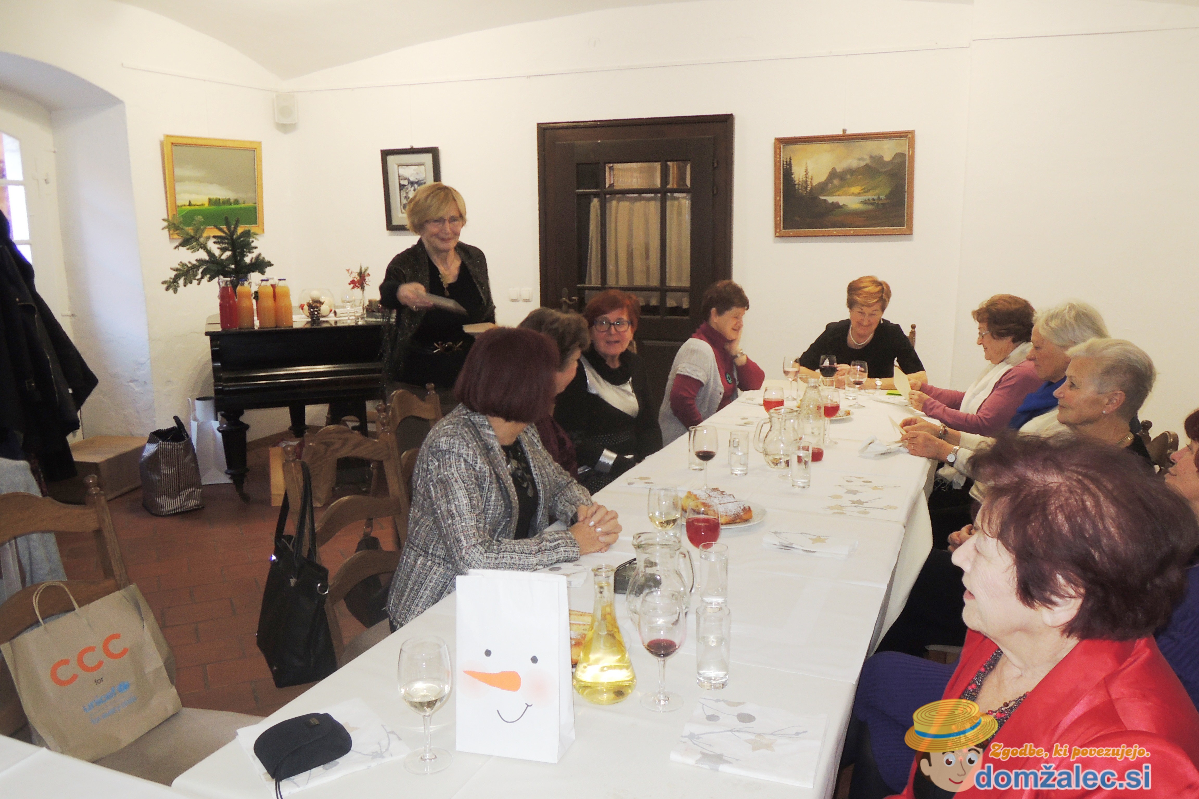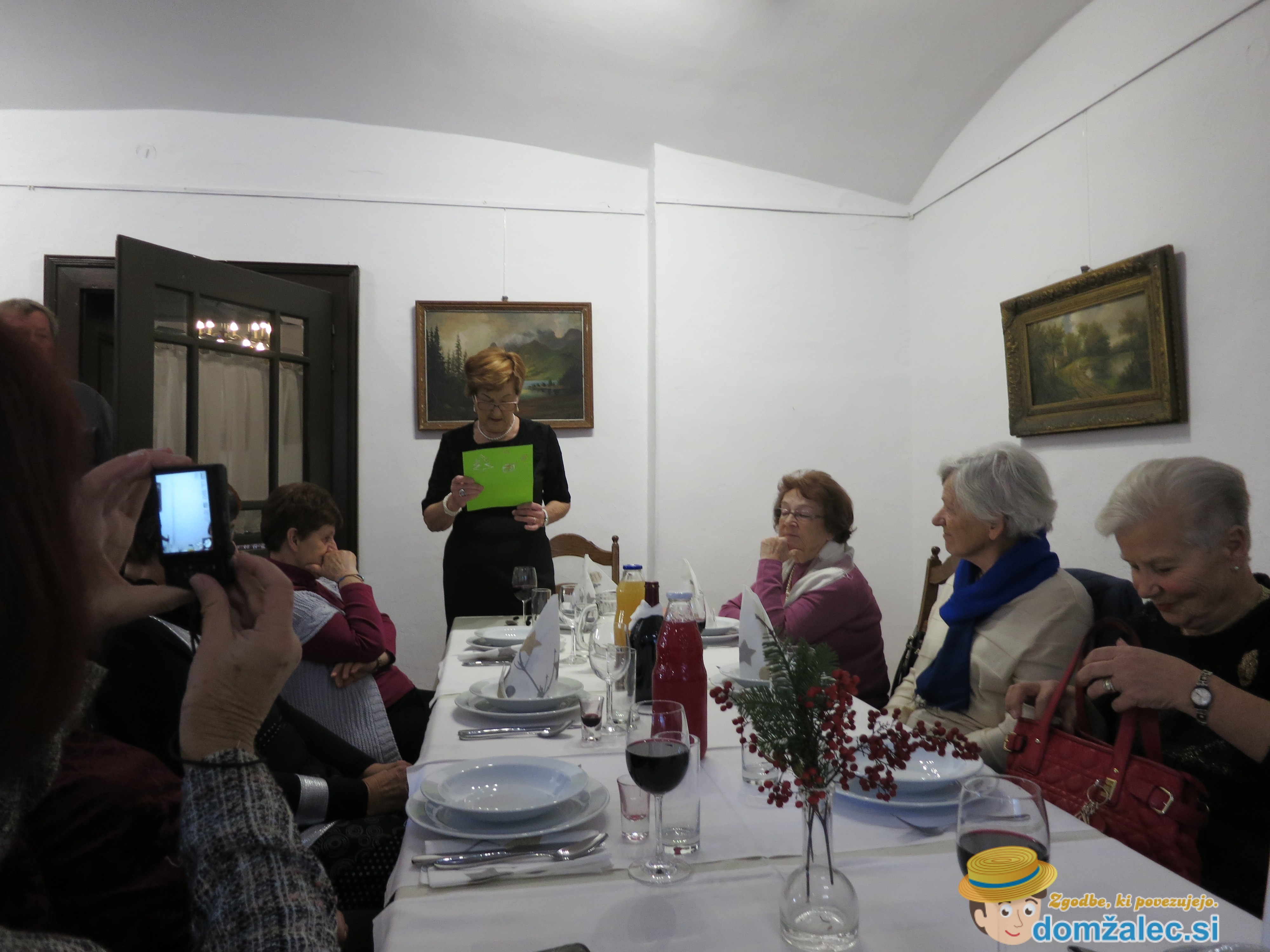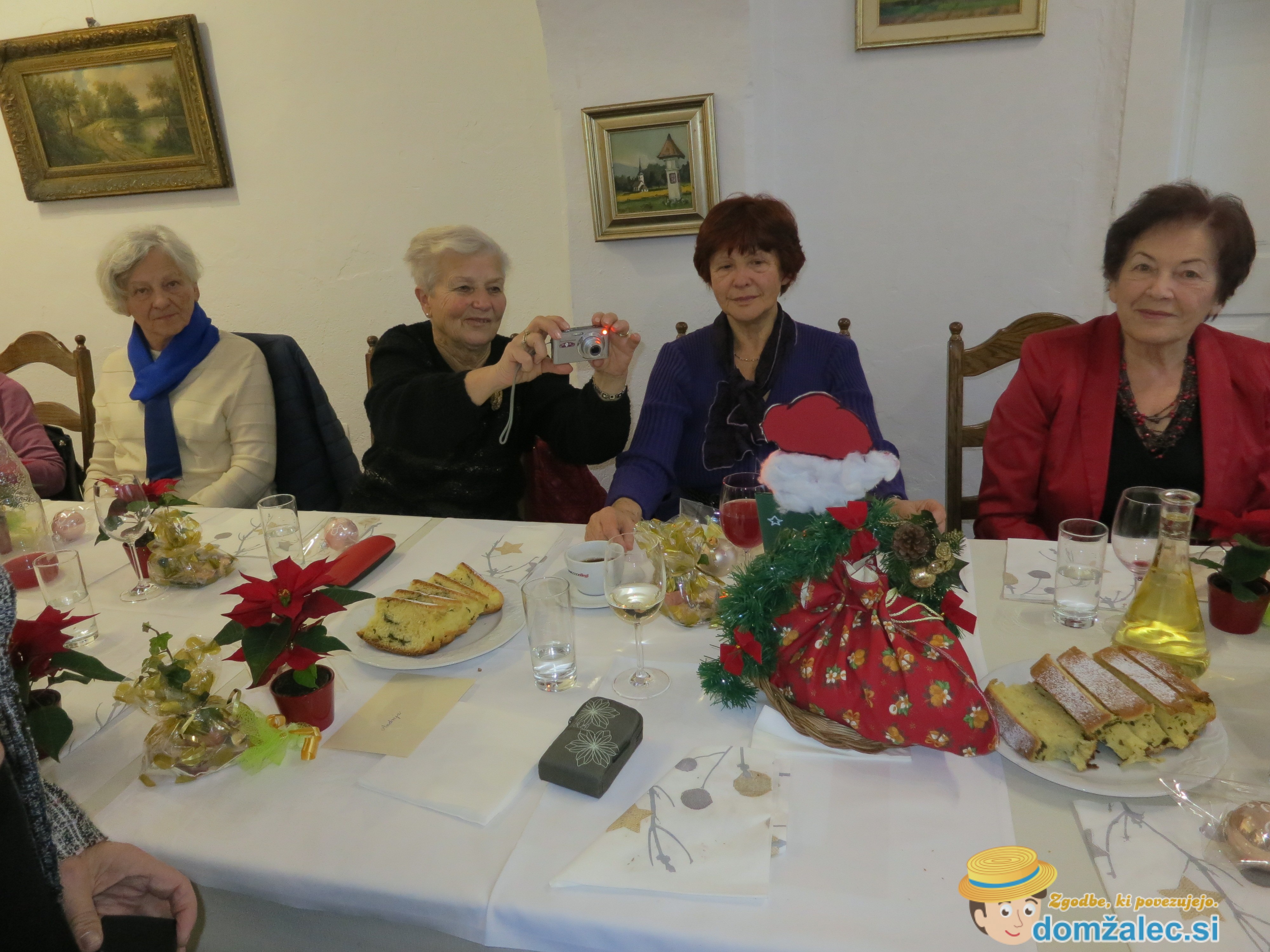 December pa nam vselej ponudi čudovito priložnost za druženje in praznovanje, ki ga imamo že tradicionalno Pr’ Krač’, v stari gostilni v Dolskem, ki deluje še iz časov, ko so po Savi plula tovorna vozila. Vedno nam pripravijo domače jedi in nas zelo gostoljubno postrežejo. Veliko naših sošolk pripravi posebna darila, narejena na roko – Sanda, posušijo sadje in posadijo netresk, simbol vitalnosti, – Marinka; nekatere spečejo pecivo, – Ana G., Slavica, Andreja; Majda je pekla posebne piškote po srednjeveškem receptu sv. Hildegarde; nekatere pripravimo fotografije celoletnih aktivnosti – Manica, Andreja, saj je lepo v roke prijeti pravo fotografijo, da ne tiči le v računalniškem pomnilniku.