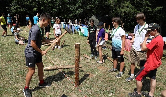 Mladi taborniki vsakodnevno telovadijo, raziskujejo bližnji gozd, se vozijo s kanuji ali pa se kopajo v Krki. Ena izmed lepših dogodivščin je zagotovo spanje pod milim nebom. Na dan obiska, pa smo otroke zmotili med izdelovanjem katapultov. Sledila je tudi tekma med vodi.