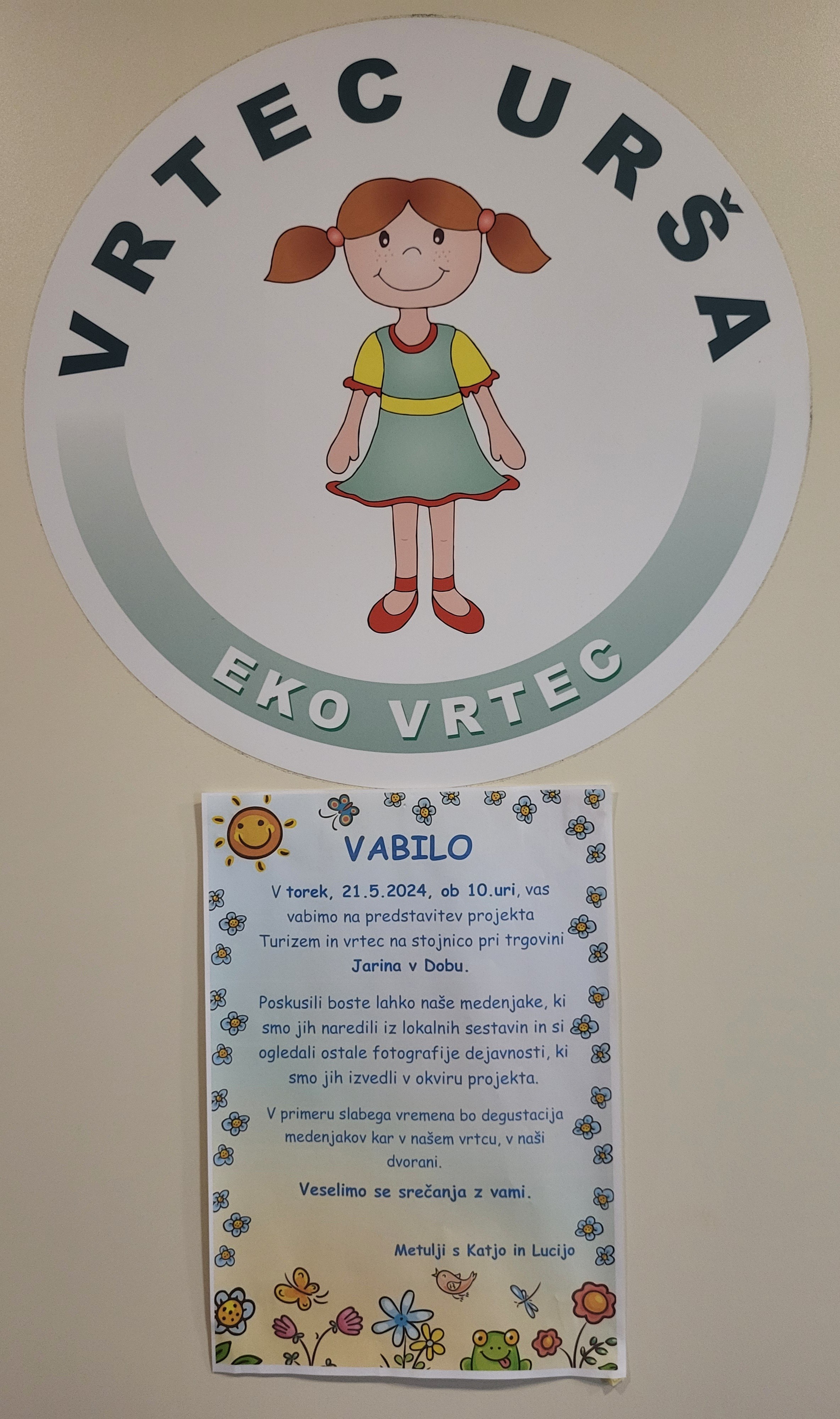 V projekt Turizem in vrtec na temo Z igro do prvih turističnih korakov smo vključeni že nekaj let. K projektu se prijavijo otroci starejši od treh let. Letošnja rdeča nit projekta je OKUSNI ZAKLADI: Lokalni kulinarični spominki s trajnostnim pridihom! Namen projekta in ciljna podlaga sta usmerjena predvsem v zaznavanje ter spoznavanje svojega okolja, otrokovo in vzgojiteljevo raziskovanje sveta v bližnji in daljni okolici ter oblikovanje vsebin, dejavnosti in aktivnosti, ki le-to spodbujajo in razvijajo.