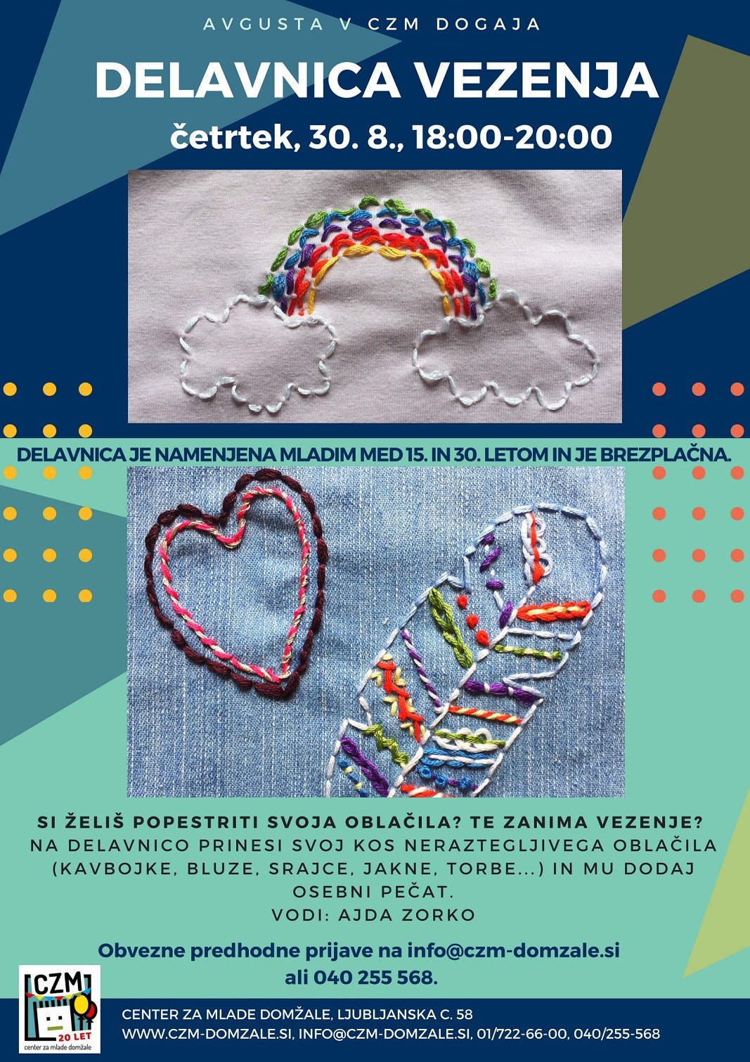 Na delavnico prinesi svoj kos neraztegljivega oblačila (kavbojke, bluze, srajce, jakne, torbe…) in mu dodaj osebni pečat. Delavnico vodi Ajda Zorko.