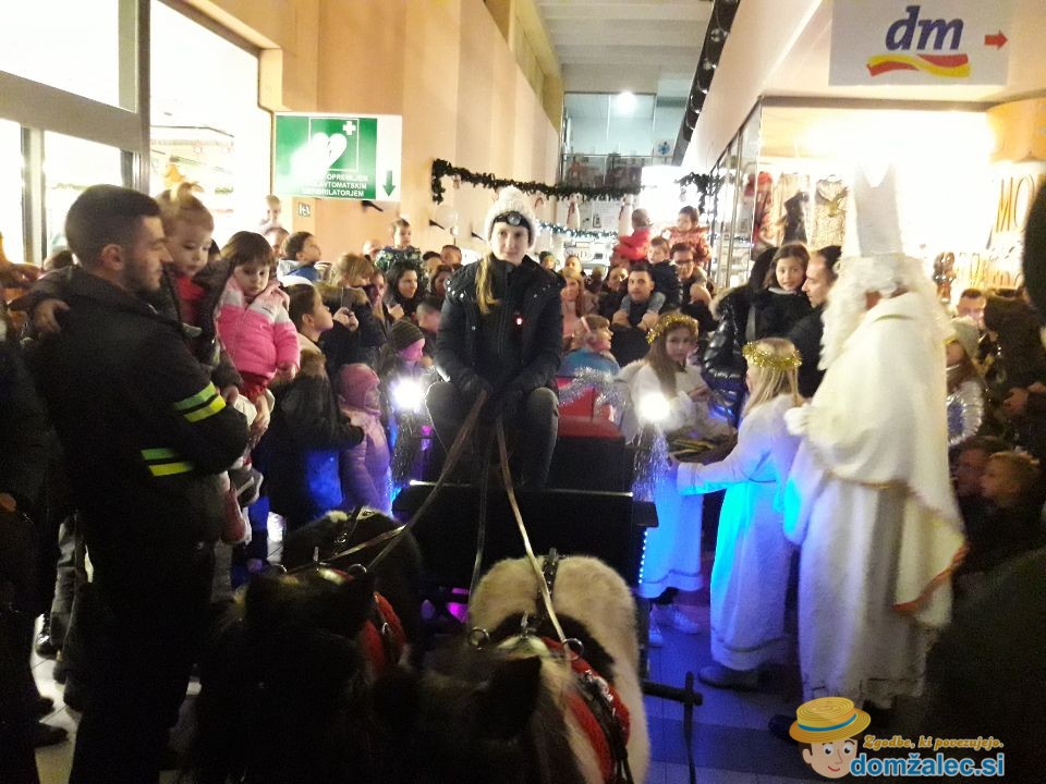 Tudi letos je bil Prodajni center Breza na Miklavžev večer praznično okrašen, kot se seveda spodobi na ta čarobni večer in prihod dobrega moža, ki sliši na ime Miklavž. Letos so prireditev obogatili tudi z glasbeno spremljavo, za kar je poskrbela Irena Kokalj iz trgovine Glasbila d.o.o. Med čakanjem na dobrega moža se je marsikateri otrok opogumil in stopil za mikrofon ter prisotnim zapel pesmico. Nato pa je prišel tisti trenutek, ki so ga najbolj nestrpno čakali vsi. Prihod Miklavža in njegovega spremstva. Najprej se je iz prvega nadstropja zaslišalo rožljanje verig in oglašanje parkeljnov, ki so med zbrane vnesli malo nemira, vendar ne za dolgo, saj je kmalu za tem na majhni kočiji, ki sta jo vlekla dva ponija, pripeljal Miklavž.