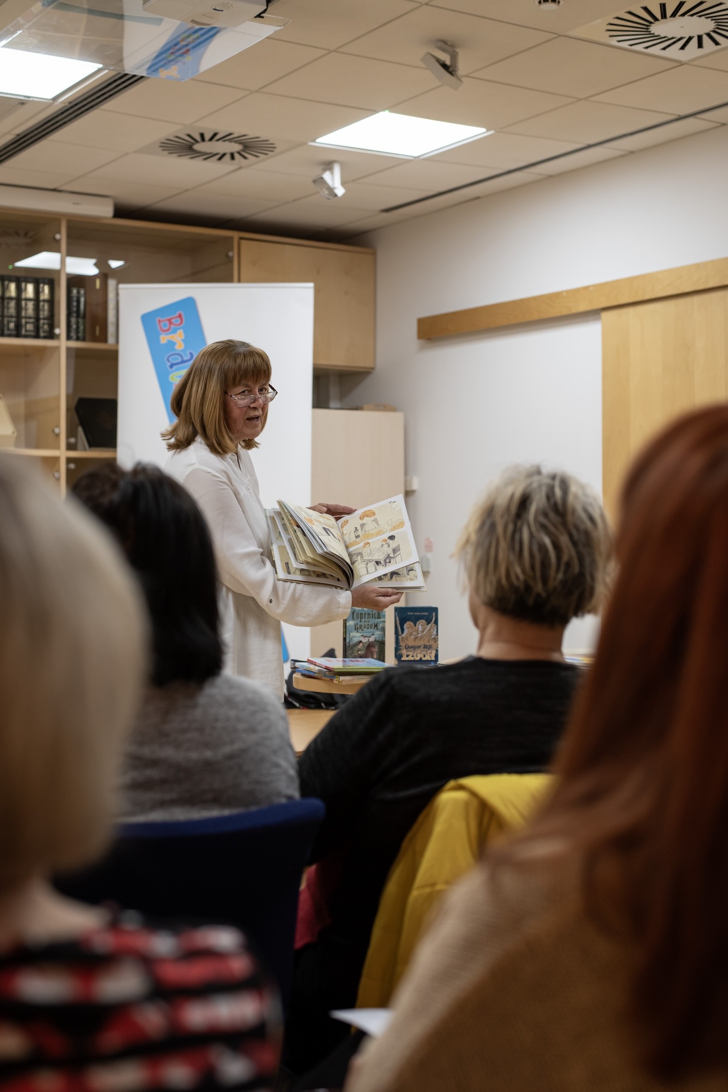 Vsako leto smo veseli tudi obiska Tilke Jamnik, ki je strokovnjakinja na področju mladinske književnosti in branja, magistra bibliotekarstva, zunanja sodelavka MKL Pionirske – centra za mladinsko književnost in knjižničarstvo, članica Bralnega društva Slovenije in podpredsednica Društva Bralna značka Slovenije. Pripravila nam je predstavitev knjig, ki je namenjena vsem generacijam. S predstavitvijo najnovejše produkcije želimo spodbujati tudi starejše, da bi za branje knjig motivirali tudi svoje otroke in vnuke. Pri predstavitvi so sodelovale članice literarne delavnice Društva Lipa.