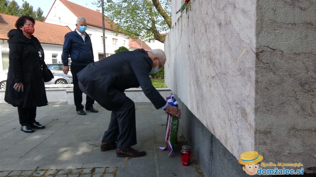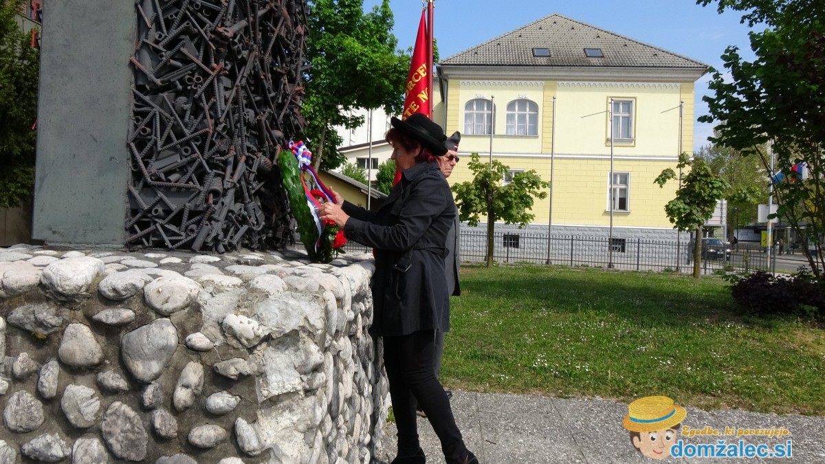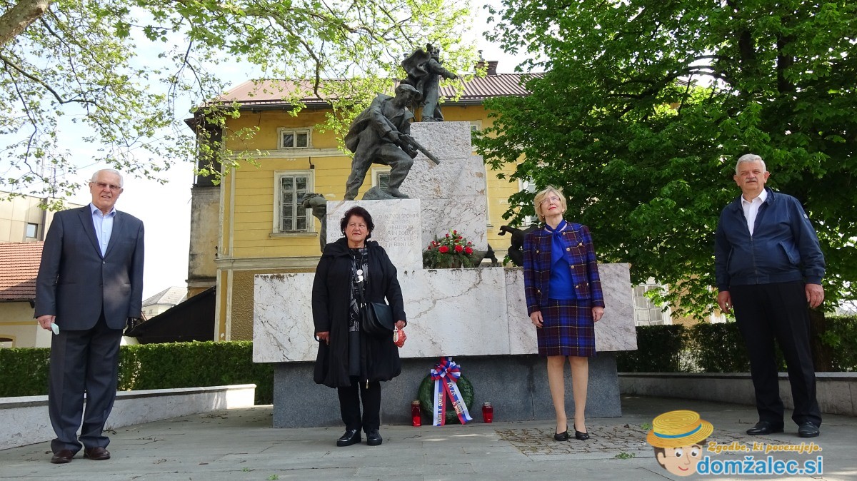 Pri osrednjem spomeniku padlim borcem v centru Domžal so se s polaganjem venca prazniku poklonili Franci Gerbec, predsednik Krajevne organizacije ZB za vrednote NOB Venclja Perka, Manica Perdan Ocepek iz Krajevne organizacije ZB za vrednote NOB Simona Jenka, Nataša Belle iz Krajevne organizacije ZB za vrednote NOB Slavka Šlandra ter podžupan Občine Domžale Marjan Ravnikar. Po koncu kratke slovesnosti sta Franci Gerbec ter Marjan Ravnikar zaželela vsem občankam in občanom vse dobro za praznik dneva upora proti okupatorju ter ob prihajajočih prvomajskih praznikih.