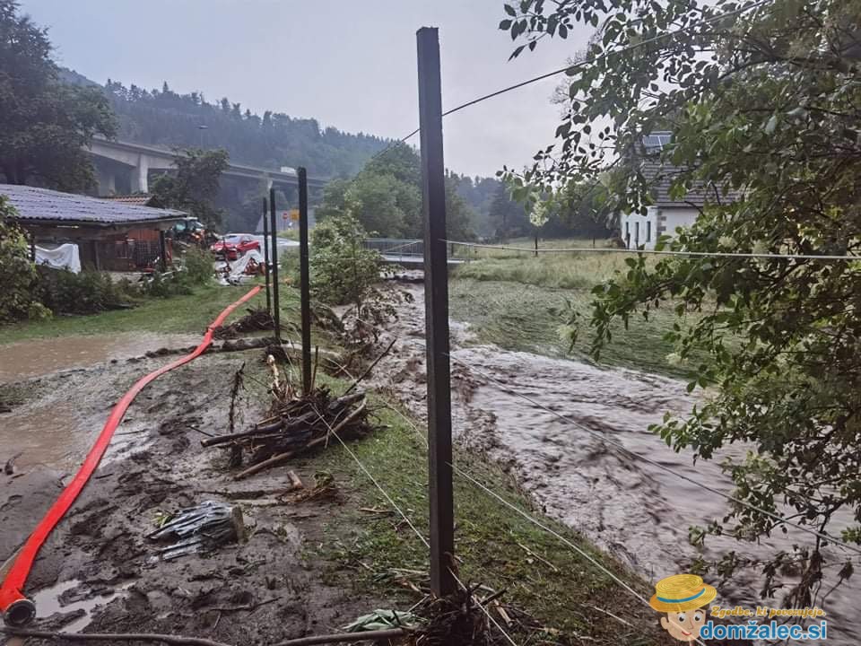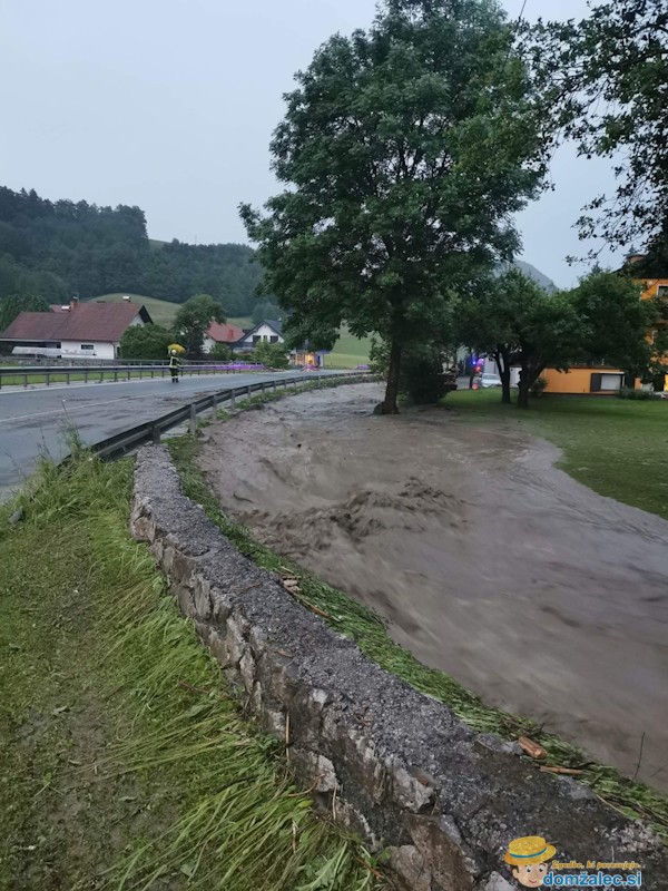 Zaradi obilnega deževja je okrog 20. ure meteorna voda ogrožala stanovanjski objekt na Škrjančevem v občini Domžale, kjer so posredovali gasilci CZR Domžale in PGD Radomlje, ki so iz jaška na dvorišču izčrpali večjo količino meteorne vode, ki je ogrožala objekt.
