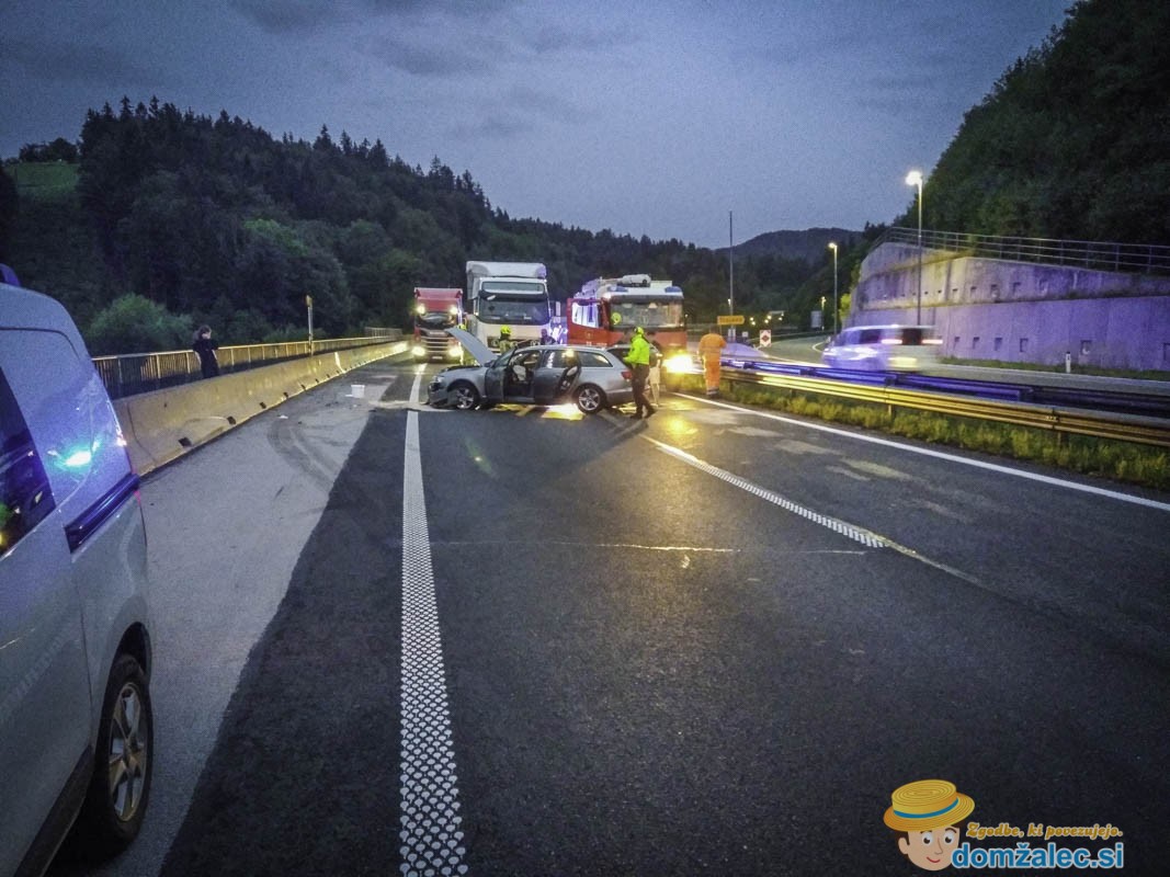 Anže Srenjšček, vodja intervencije I. izmene poklicne gasilske enote CZR Domžale nam je povedal, da so bili ob 5.58 uri obveščeni, da sta na štajerski avtocesti za predorom Trojane, v smeri Celja, dve osebni vozili trčili v zaščitno ograjo in sicer naj bi prvi voznik izgubil oblast nad vozilom in trčil v zaščitno ograjo, drugi voznik, ki je vozil za njim in se mu je umikal, pa je nato trčil v betonsko zaščitno ograjo. Pri tem je vozilo obstalo na voznem in prehitevalnem pasu. Gasilci so takoj po prihodu zavarovali kraj nesreče, odklopili akumulatorja na vozilih, posuli cestišče razlitih motornih tekočin ter s tehničnim posegom poškodovano vozilo premaknili na odstavni pas. Zaradi nesreče je bila nekaj časa na tistem odseku avtocesta zaprta za ves promet. V nesreči ni bilo poškodovanih.