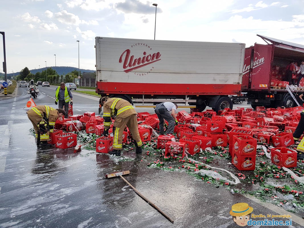 Nenavadni dogodek, ki je v žalost spravil marsikaterega pivoljubca, ko je zagledal ta prizor, se je pripetil okrog 17.30 ure. Na kraju so posredovali gasilci PGD Trzin in CZR Domžale, ki so pomagali pospraviti črepinje s cestišča ter raztresene zabojnike z nepoškodovanimi steklenicami naložiti nazaj na tovornjak. Skupaj na bi se raztreslo okrog 2.500 litrov piva. Zaradi nesrečnega dogodka in odpravljanja posledic, je bil promet v tistem delu nekaj časa oviran.