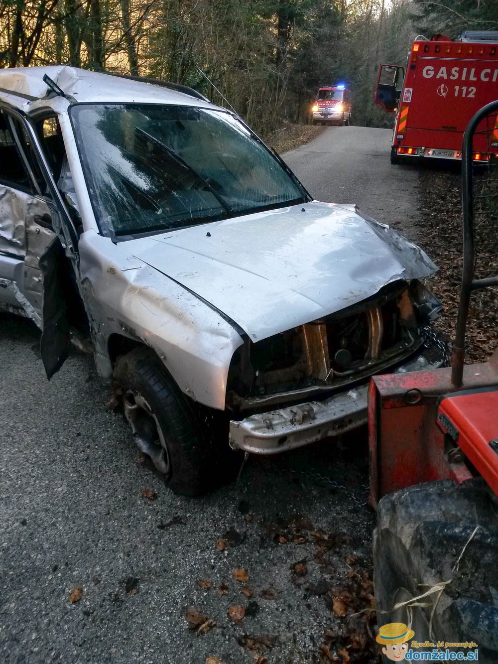 Martin Juteršek, vodja intervencije poklicnih gasilcev CZR Domžale nam je povedal, da so bili o prometni nesreči v naselju Vinje pri Moravčah obveščeni ob 9.09 uri in sicer je voznica osebnega vozila znamke Suzuki Vitara zapeljala s ceste in pristala v potoku Drtiščica. Voznica je že pred prihodom gasilcev in reševalcev sama zapustila vozilo, ki je bilo popolnoma uničeno, saj se je vozilo preobračalo po bregu, preden je pristalo v potoku. Hujših poškodb naj voznica nebi utrpela, so jo pa reševalci NMP ZD Domžale prepeljali v UKC Ljubljana.