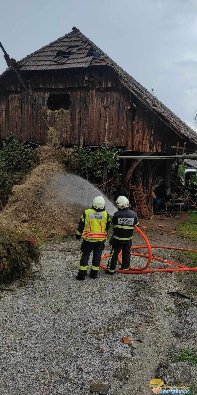 Zagorelo v gospodarskem poslopju v Malem Jelniku. Požar po vsej verjetnosti povzročil udar strele