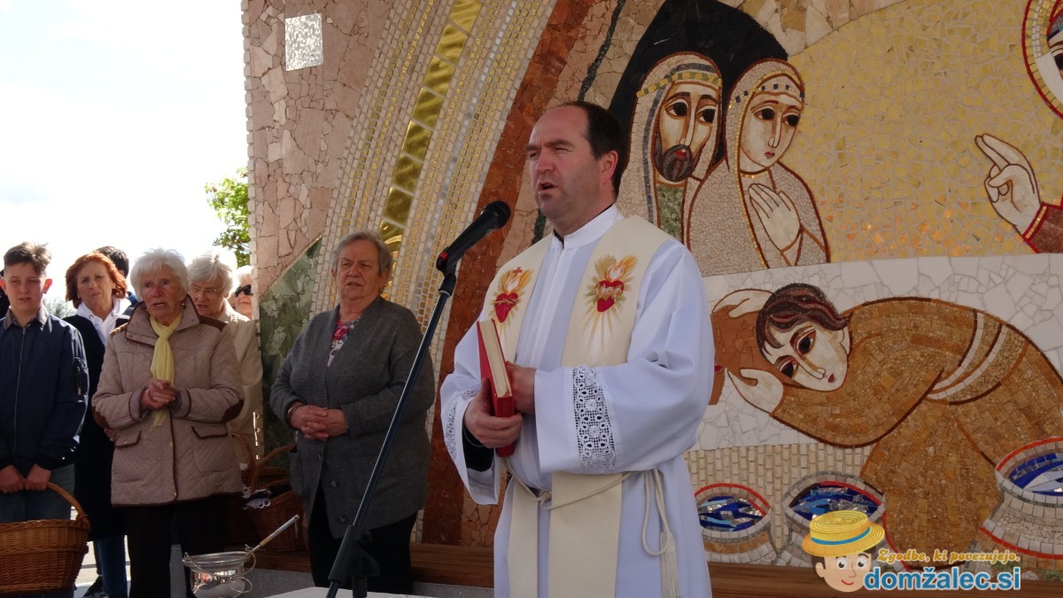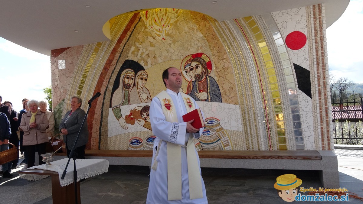Na veliko soboto se po vseh cerkvah blagoslavljajo velikonočna jedila. Bogoslužje pred paviljonom na večnamenski ploščadi pri cerkvi Marijinega vnebovzetja v Domžalah je vodil mag. Klemen Svetelj, ki je tudi blagoslovil velikonočne jedi, katere niso samo jed, ampak tudi znamenja z globoko simboliko. Tako je kruh znamenje Božje dobrote in človekovega dela. Kot znamenje življenja nas spominja na Kristusove besede o zrnu, ki mora v zemlji umreti, da lahko obrodi sad. Meso (šunka) je podoba Jezusa Kristusa, ki je pravo velikonočno Jagnje, ki je bilo darovano za naše grehe. Spominja nas tudi na velikonočno jagnje, ki so ga Izraelci uživali v spomin na rešitev iz egiptovske sužnosti. Pirhi simbolizirajo pet Jezusovih ran oziroma kaplje krvi, so pa tudi podoba groba in simbol vstajenja. V jajcu se namreč skriva življenje, ki ob določenih pogojih zdrobi lupino in se prikaže na dan. Lupina je podoba skal, ki so zapirale Kristusov grob, a jih je Kristus ob vstajenju razprl. Korenine hrena nas spominjajo na tri žeblje, s katerimi je bilo Jezusovo telo pribito na križ. Ko okušamo njegovo ostrino, se spomnimo, da je Kristusovo trpljenje cena našega odrešenja. Potica pa spominja na Kristusovo krono. Grenkoba nas spominja na Kristusovo žejo na križu, ki je bila predvsem žeja po človeški in Božji bližini.