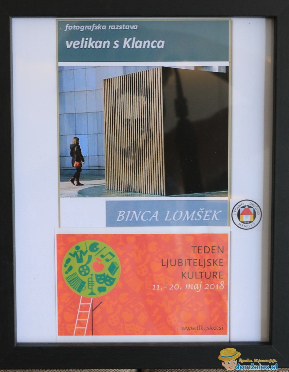 V Tednu ljubiteljske kulture, ki poteka od 11. do 20. maja 2018, in v počastitev 100-letnice smrti Ivana Cankarja, je Binca Lomšek, članica Likovnega društva Mengeš, pripravila fotografsko razstavo z naslovom »Velikan s Klanca«, ki je v celoti postavljena v MKLJ Knjižnici Prežihov Voranc v Ljubljani.