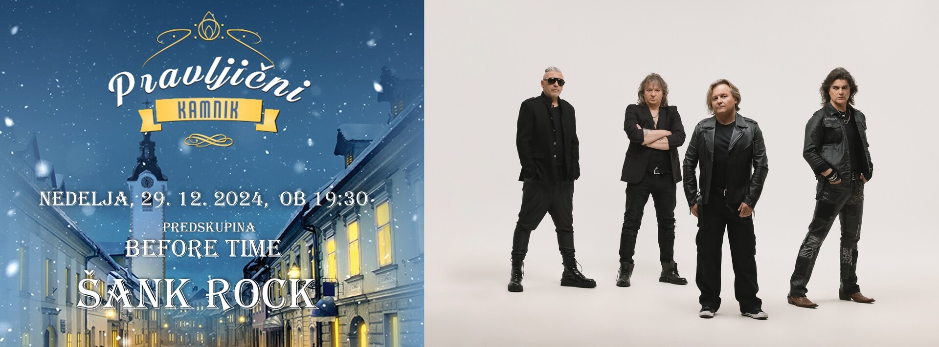 V nedeljo, 29. decembra, bo oder prevzel rock z legendarno skupino Šank rock, ki bo s svojimi uspešnicami poskrbela za nostalgično in energično atmosfero. Pred njimi bo ogrela občinstvo predskupina Before Time.