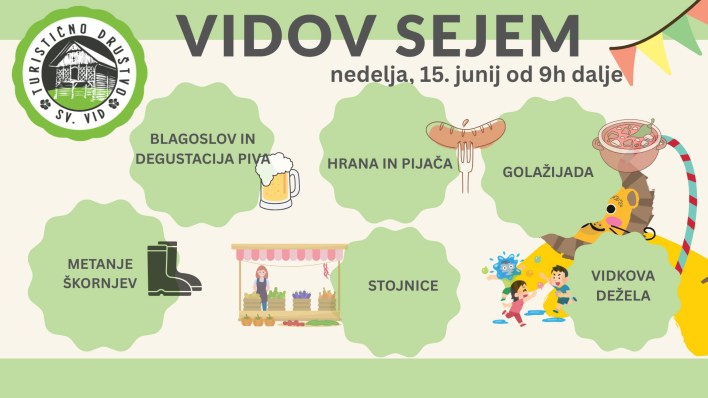 Vrhunec praznovanja sledi v nedeljo, 15. junija, ko bo od 9. ure dalje potekal Vidov sejem. Začetek dogajanja bo zaznamovala slavnostna godba po jutranji maši, sledil bo blagoslov piva in kulinarično tekmovanje v kuhanju golaža. Dogodek bo popestrilo tudi tradicionalno tekmovanje v metanju škornjev. Sejem bo kot vsako leto ponujal bogato izbiro lokalnih dobrot, izdelkov domače obrti in osvežilnih pijač. Za najmlajše bo pripravljena Vidkova dežela z ustvarjalnimi in zabavnimi vsebinami.