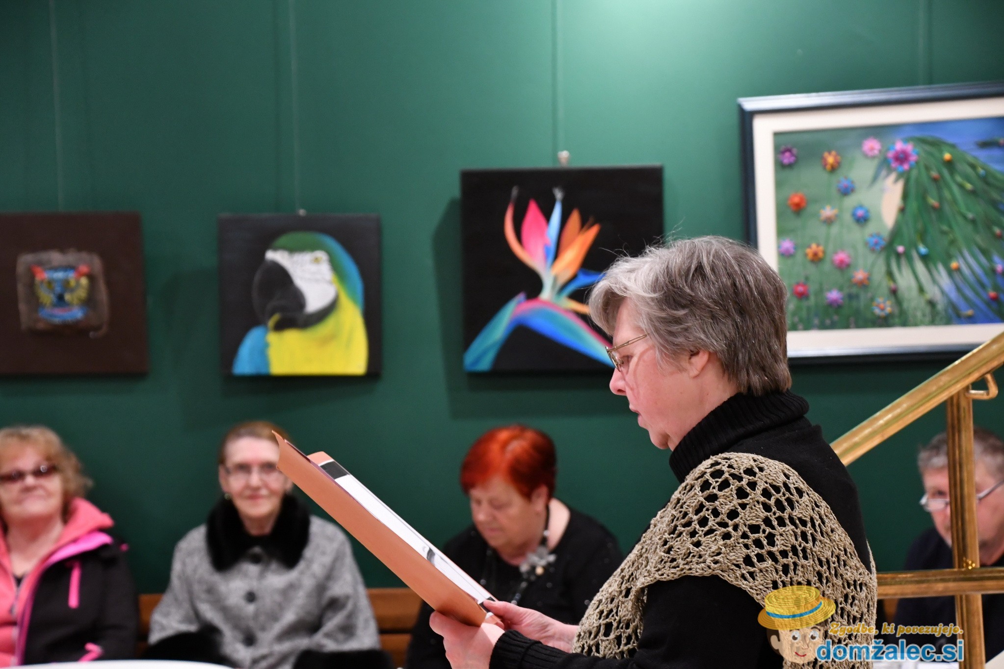 Odprtje razstave v preddverju Kulturnega doma Mengeš je bilo v sredo, 14. marca 2018. Na stenah te »galerije« obiskovalci lahko občudujejo 30 likovnih del dveh avtoric, ki vsaka v svoji likovni govorici pripovedujeta in razkrivata rešitve likovnih tem. Da sta razstavljavki res vsestranski pove dejstvo, da sta skupaj s predsednico društva Leonido Goropevšek, ki je povezovala prireditev, sami pripravili recitacije pesmi Ivana Cankarja in Toneta Pavčka. O njunem delu je spregovoril mentor Lojze Kalinšek.