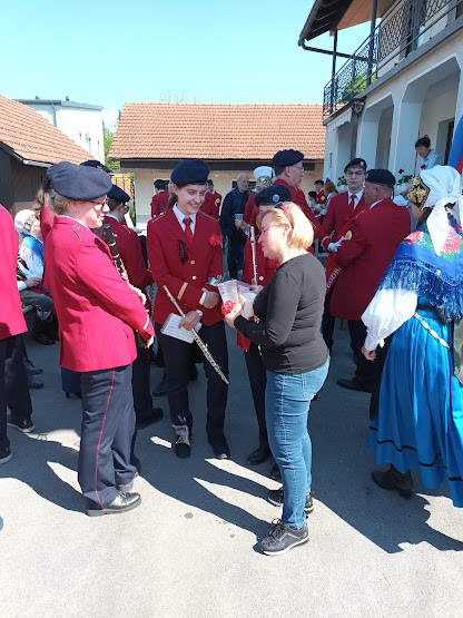 Domžalska godba se je pri Banku ustavila okoli 10. ure dopoldne, druženje z gostitelji pa je trajalo dobre pol ure. Prvomajski dopoldan je tako potekal kot srečanje in druženje poznanih in manj poznanih, predvsem pa tudi kot obujanje spominov iz preteklosti zlasti spodnjih Domžal, Štude in bližnje okolice v lepem vremenu in z obilico dobre volje. Tudi tokrat gre zahvala glavni gostiteljici Veri Banko.