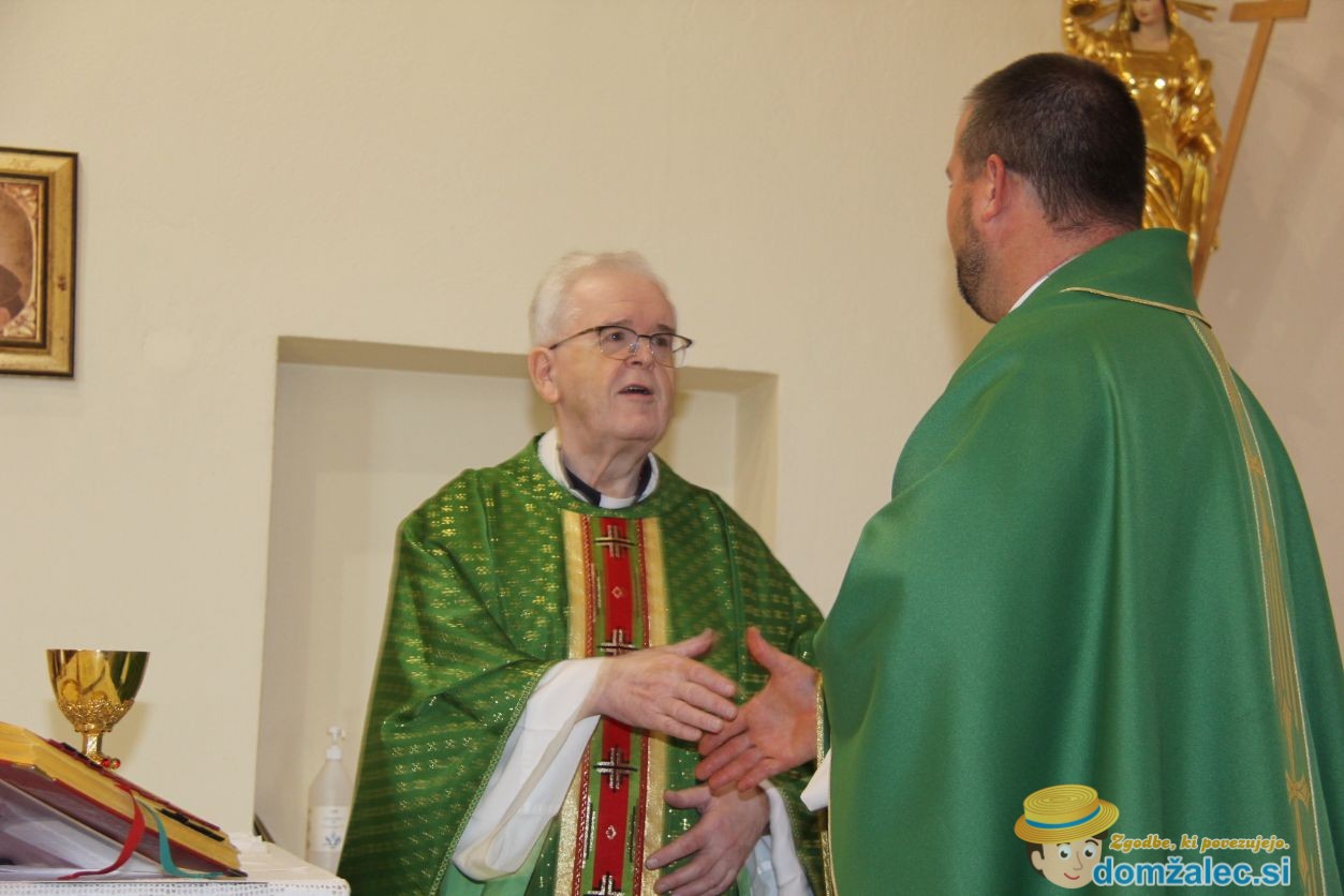 Kar 18 let že mašuje v tej župniji in nič ne kaže, da bi se njegovo delo v Gospodovem vinogradu ustavilo, saj z veseljem pride med ljudi tam na skoraj 600 metrov nadmorske višine, kjer ljudje še znajo stopiti skupaj in tudi tokrat so. Za slovesnost se spodobi, da je tudi petje na višjem nivoju in že tako lepemu petju sta tokrat svoje dodala še Špela in Matevž Kink.