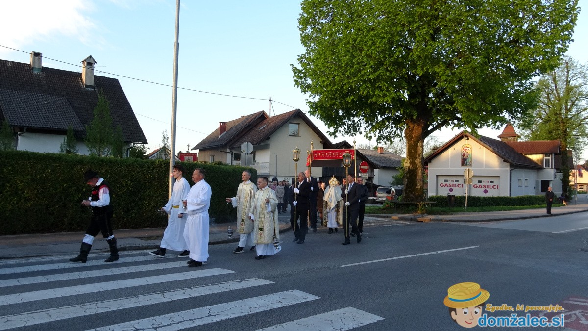 Tudi v Domžalski župniji je izpred cerkve Marijinega vnebovzetja potekala vstajenjska procesija, ki so se je udeležile narodne noše, pevci cerkvenega pevskega zbora, nosilci bander, neba in luči, ministranti, duhovniki in duhovni pomočniki, skavti ter farani, ki so s pesmijo in molitvijo v dolgi procesiji oznanjali Vstalega Kristusa, pritrkovalci pa so iz cerkvenih zvonov izvabljali velikonočne pritrkovalske melodije, ki so spremljale procesijo.