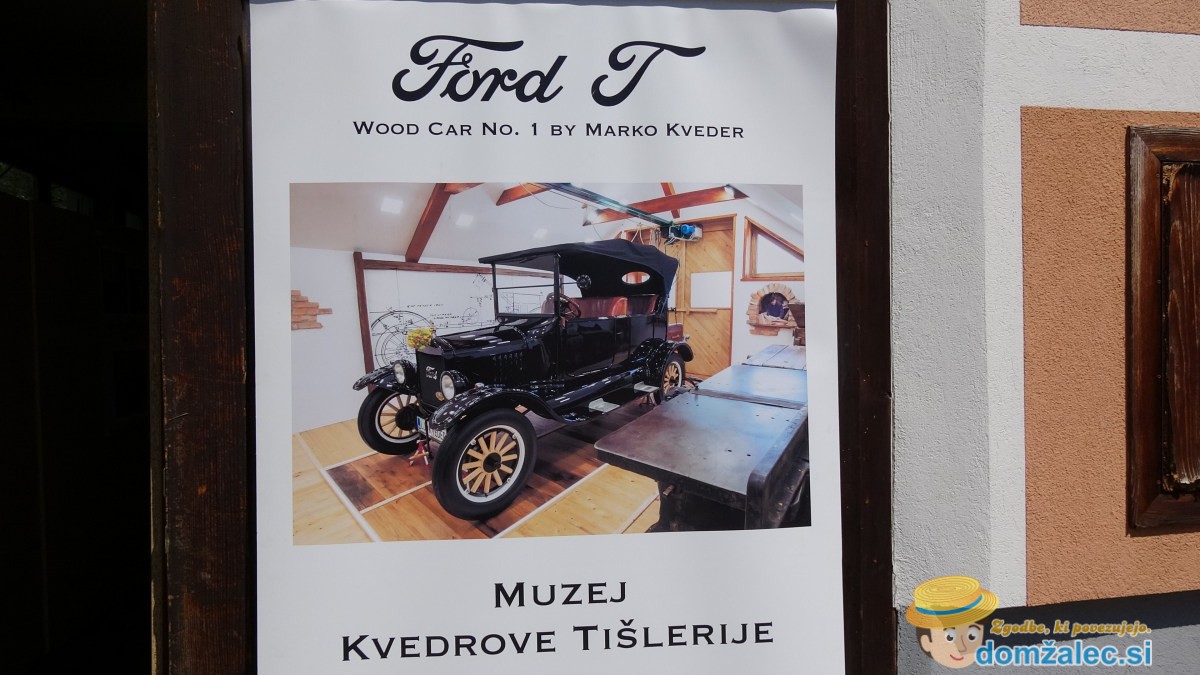 Kot je ob ogledu muzeja pripovedoval Marko Kveder, je pri izdelavi lesenega avtomobila, replike prvega serijskega avtomobila na svetu Forda T, uspešno izrazil številne skrite talente, od mizarjenja, ličarstva, kiparjenja do rezbarjenja. Verjame, da se veliko mizarjev prav zaradi tega težko loti takih raznolikih in zahtevnih del. Marko si je leta 2012 zadal težko nalogo ali kot je rekel, težak izziv. Že nekaj časa je v njem tlela močna iskra, kako narediti leseno kopijo Forda T, letnik 1919. Z veliko znanja, natančnostjo in potrpežljivostjo ter s številnimi podporniki, je izziv uspešno uresničil. Avto je povsem vozen in prav tak, kakršen je prišel s trakov Fordove tovarne daljnega leta 1919. Jeseni 2016 se je Marko na Vransko pripeljal z lesenim Fordom T, ki pa takrat še ni bil pobarvan. Obiskovalci AMZS-ovega Centra varne vožnje na Vranskem so bili nad njegovim izdelkom navdušeni. Leseni Ford T je narejen po originalnih načrtih avtomobila z letnico 1919. Za izdelavo sestavnih delov Forda T je potreboval štiri leta, za montažo pa nekaj mesecev. Kar 70 % delov avtomobila je izdelal iz lesa, ki jih je zasnoval in naredil sam, kovinske dele pa je naročil pri kovaču. 1,4-litrski štirivaljni bencinski motor za Forda T je našel v Fordu Caprisu letnik 1971, ki je prav tako starodobnik in pomemben predstavnik Fordove zgodovine. Motorni pokrov in hladilnik pa je kupil pri ameriškem specialistu za Forde T, Macsu. Če vas zanima, kako je nastajal leseni avto, je Kvedrova “tišlerija” v Rafolčah pravi naslov. Po dogajanju ob 30-letnici Kvedrove “tišlerije” je sledil ogled muzeja, v tišlarski delavnici je sledilo prijetno druženje.