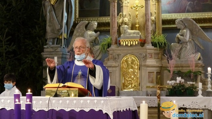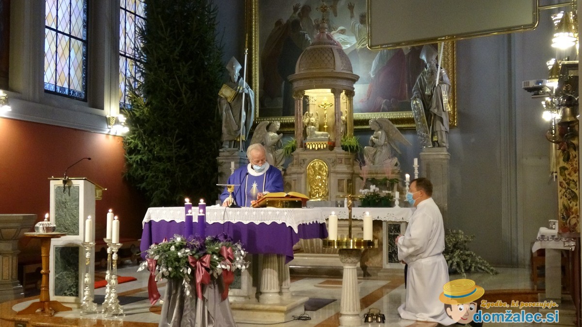 Na četrto adventno nedeljo smo v cerkvi Marijinega vnebovzetja v Domžalah posneli prvo sveto mašo, ki jo je daroval Andrej Svete, duhovni pomočnik v župniji Domžale in letošnji zlatomašnik. Da se je mir, o katerem so prepevali angeli na sveto noč, naselil v naša srca, so s petjem poskrbeli članice in člani Cerkvenega mešanega pevskega zbora župnije Domžale, pod vodstvom zborovodkinje Ksenije Kozjek in organista Janeza Kozjeka.