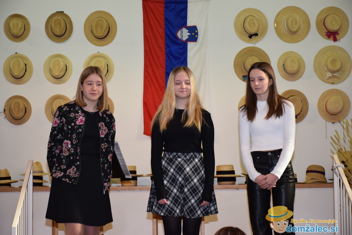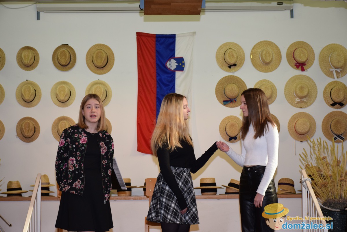 V organizaciji Zveze kulturnih društev Domžale je v sredo, 8. februarja 2023, v Slamnikarskem muzeju v Domžalah potekla prireditev ob Prešernovem dnevu, slovenskem kulturnem prazniku. Že tradicionalno so v kulturnem programu združili več umetniških zvrsti: zborovsko, instrumentalno in poezijo. Na prireditvi so nastopili Mešani pevski zbor Klas Groblje pod vodstvom zborovodje Roka Rakarja, odlični mladi glasbenici, sestri Neža in Katarina Kolar Kolar (Neža na kitari in violini, Katarina na violončelu), dela Toneta Pavčka, Karla Destovnika Kajuha in Franceta Prešerna pa so deklamirale in pele učenke Podružnične osnovne šole Ihan pod vodstvom Matejke Perne Lisjak.