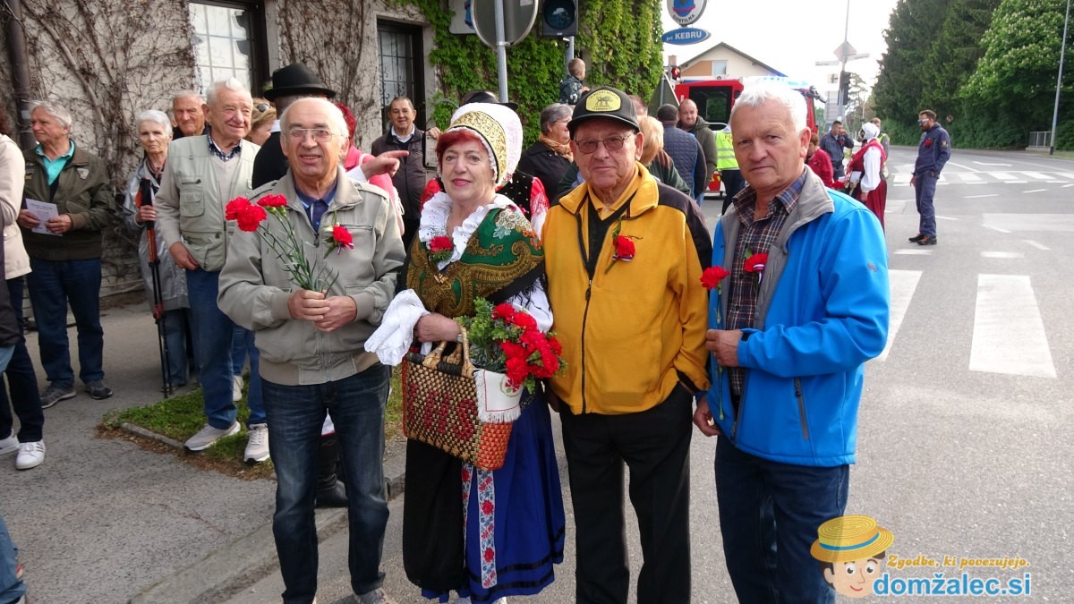 Med množico, ki se je zbrala pri Kebru in čakala na prihod godbenikov, narodnih noš, mažoretk ter ostalega spremstva, smo videli same znane domžalske in okoliške obraze. To so ljudje, ki jim tradicija nekaj pomeni. Med njimi je bil tudi Borut Ernestl, podžupan Občine Domžale. Letos se je sprevod po mnogih letih ponovno podal po glavni cesti skozi center Domžal, tako jih je pot peljala okoli novega krožišča vse do Gostilne Keber, kjer jih je tradicionalno pričakala družina Kovač. Po prihodu sta Ireno Kovač in njeno družino pozdravila kapelnik Godbe Domžale Gregor Vidmar in dobitnik letošnje zlate plakete občine Domžale Jože Pavli ter vsem zaželela čestitke ob 1. maju. Članice Društva narodnih noš in ohranjanje kulturne dediščine Domžale pa so poskrbele, da so člani družine Kovač in obiskovalci prejeli nageljčke.