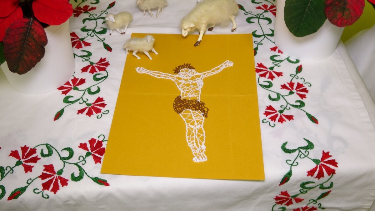 Pod jaslicami in ob jaslicah so postavljeni tudi prti z vezenimi umetninami, stari tudi osemdeset in več let, ki pa so kljub letom odlično ohranjeni.