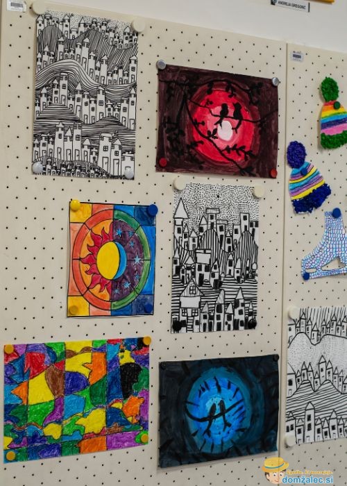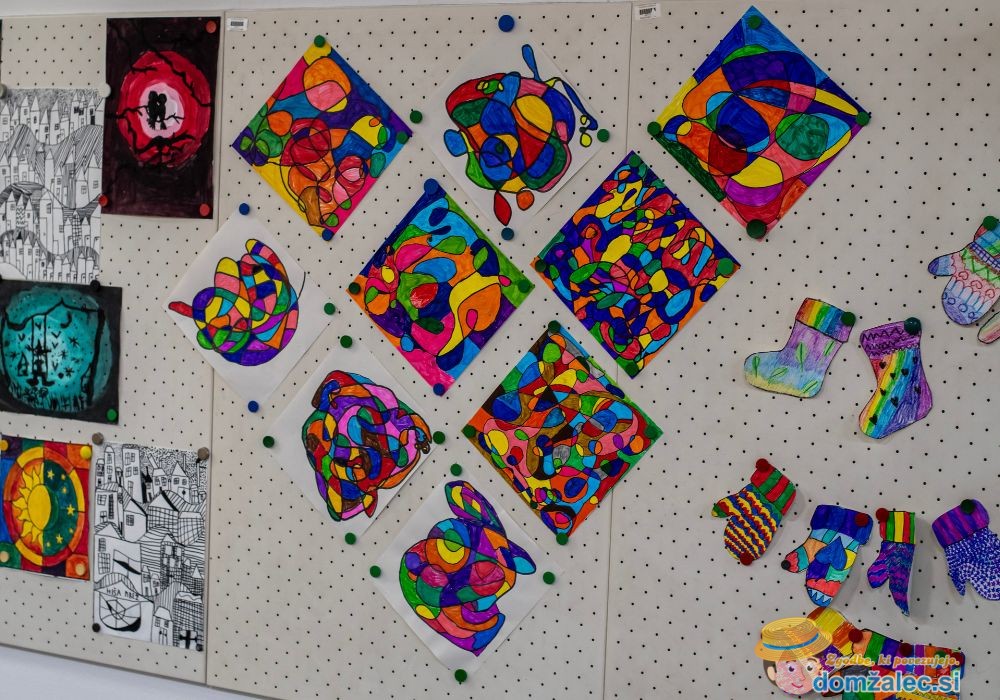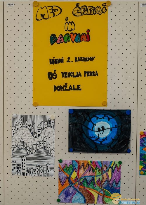 V Knjižnici Domžale imajo na ogled dve razstavi z naslovoma Črte in Barve, katere razstavljajo učenci OŠ Venclja Perka ter razstavo ilustracij Mišja zabava, avtorja Jake Vukotiča.
