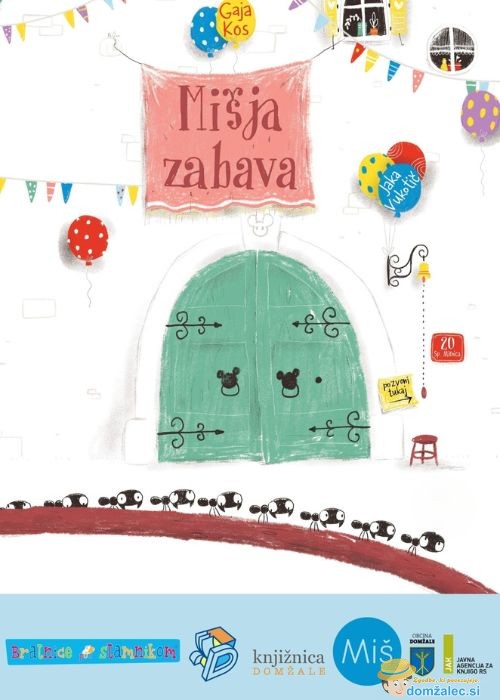 Letošnji mladinski literarni festival Bralnice pod slamnikom spremlja razstava ilustracij Jake Vukotiča. Miški Rita in Mici sta svojo prvo vlogo dobili v slikanici Ne pozabi na naslov!, ki se je uvrstila tudi na seznam Bele vrane, ki ga pripravlja Mednarodna knjižnica za mladinsko književnost v Münchnu. Miški sta si v prejšnji slikanici zaželeli, da bi nastopili še v eni – tokrat v taki zgodbi, ki ima glavo in rep. Želja se jima je uresničila. V Mišji zabavi je kar nekaj glav in repov, ker v njej nastopa veliko miši in dva mačka …Avtorica slikanice je Gaja Kos, ki že vrsto let deluje kot samozaposlena v kulturi, pri čemer se v različnih vlogah posveča predvsem otroški in mladinski književnosti, iz katere je tudi doktorirala. Ilustratorja Jaka Vukotiča pa poznamo po izjemnih ilustracij v otroških in mladinskih knjigah: Ne pozabi na naslov!, Past v razredu, Sposojena babica Štefi, Huda risinja, …
