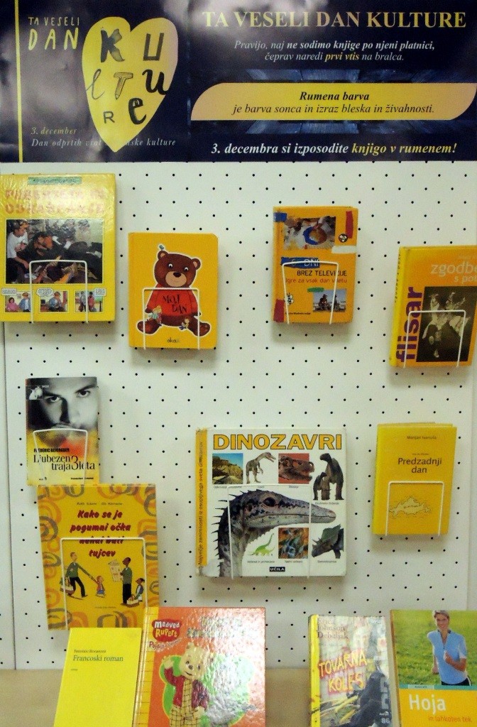 V Knjižnici Domžale smo tokrat pripravili izbor RUMENIH KNJIG. Pravijo, naj ne sodimo knjig po njeni platnici, čeprav naredi prvi vtis na bralca. Rumena barva je barva sonca in izraz bleska in živahnosti. Danes si torej izposodite knjigo v rumenem.