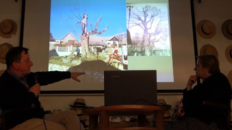 V predstavitvi s slikami na projekcijskem platnu je gost večera nazorno prikazal nekaj drevesnih zgodb. Na podeželju imamo lep primer sožitja dreves in ljudi, saj so pred starejšimi domačijami pogosto posajena sadna drevesa, pa tudi lipe in orehi, ki rastejo čisto ob hišah. To je dobro, saj drevesa dajejo senco, spomladi pa vse preplavi cvetje. Cvetoča drevesa, med njimi pa hišica – to je ena najlepših podob, ki jih lahko vidimo na vasi. Žal pa je takšnih prizorov ob novogradnjah vse manj. Namesto sadnih dreves se ljudje raje odločajo za angleško trato, kar je zelo žalostno. Obiskovalci večera so si ogledali fotografije in prisluhnili zgodbam različnih dreves po Sloveniji, ki so dočakala častitljivo starost. Mnoga med njimi še danes rastejo in razveseljujejo staro in mlado na trgih ter v naravi.