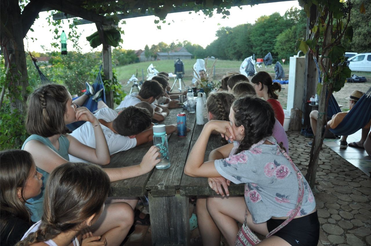 Mladina s tabora je bila skoraj vsa iz domžalske občine, mentorji pa so tudi bili v glavnem iz »ljubljanske kotline«. Naredili smo tudi osem predavanj v času osrednjega tabora, tisto, kar je bilo pred in po njem, pa je presežek za prihodnja leta. Prvi del tabora sem opravil konec junija, na njem je bilo sedem perspektivnih mladenk in mladcev, v glavnem smo se ukvarjali z nabiranjem in s sušenjem zdravilnih zelišč ter slikanjem Sonca. Drugi del tabora v sredini julija pa smo se osemčlanska ekipa učili izdelati dobrote iz plodov (aronija, breskve, maline, jabolka, bučke) in pripraviti zelišča za kreme. In seveda vsakič smo speljali opazovanje z mojim nevodenim teleskopom – Dobsonom. Ako boste razmišljali, da svojemu nadobudnežu kupite teleskop, priporočam prav tega in seveda zvezdno karto. No, tabore pred glavnim taborom smo uspešno izpeljali, tabor po taboru, pa sem zaradi izredne ekipe premaknil na 4. do 8. 8. in 11. ter 12.8. Za sedanje in bodoče mentorje si je pač potrebno vzeti malo več časa, izmenjati izkušnje, spoznati novosti, pregledati nasvete s spleta … Skratka naučili smo se veliko novega. Namen je preprost: predati (zastonj) naša znanja mladim, živeti z njimi svoje vrednote in splesti nova prijateljstva. Res sem vesel, da sem s kančkom svoje miselnosti o prostovoljstvu in to, da mora človeštvo znanja predajati iz generacije v generacijo, okužil tudi svoje učence. S tabori bom zaključil 16. 8., za nekaj starejših radovednežev bom pa izvedel še kakšno delavnico. Ne bom razlagal, kakšna je naša oprema, kaj snemamo, kaj vse smo uspeli iztisniti iz opreme. S seboj smo imeli 20 teleskopov in 14 vodenih montaž. Zame je enako velik dosežek, da se je na primer moj učenec Marcel naučil postaviti in zatem opazovati s svojim majcenim teleskopom, kot bleščeča fotografija narejena z bajno opremo. In to, da sem s svojimi nekdanjimi (in sedanjimi) učenci okužil toliko mladih, ki bodo za vedno nepotešeni v iskanju novih znanj.