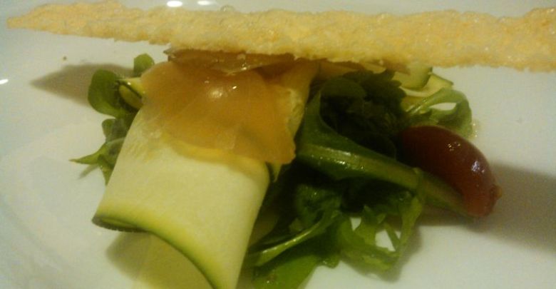 Berivko rahlo začinimo in jo položimo na poljubni krožni. Na solato damo dve rezini bučke in nato položimo poljubno dimljeno ribo. Solimo, popramo in polijemo z oljčnim oljem.