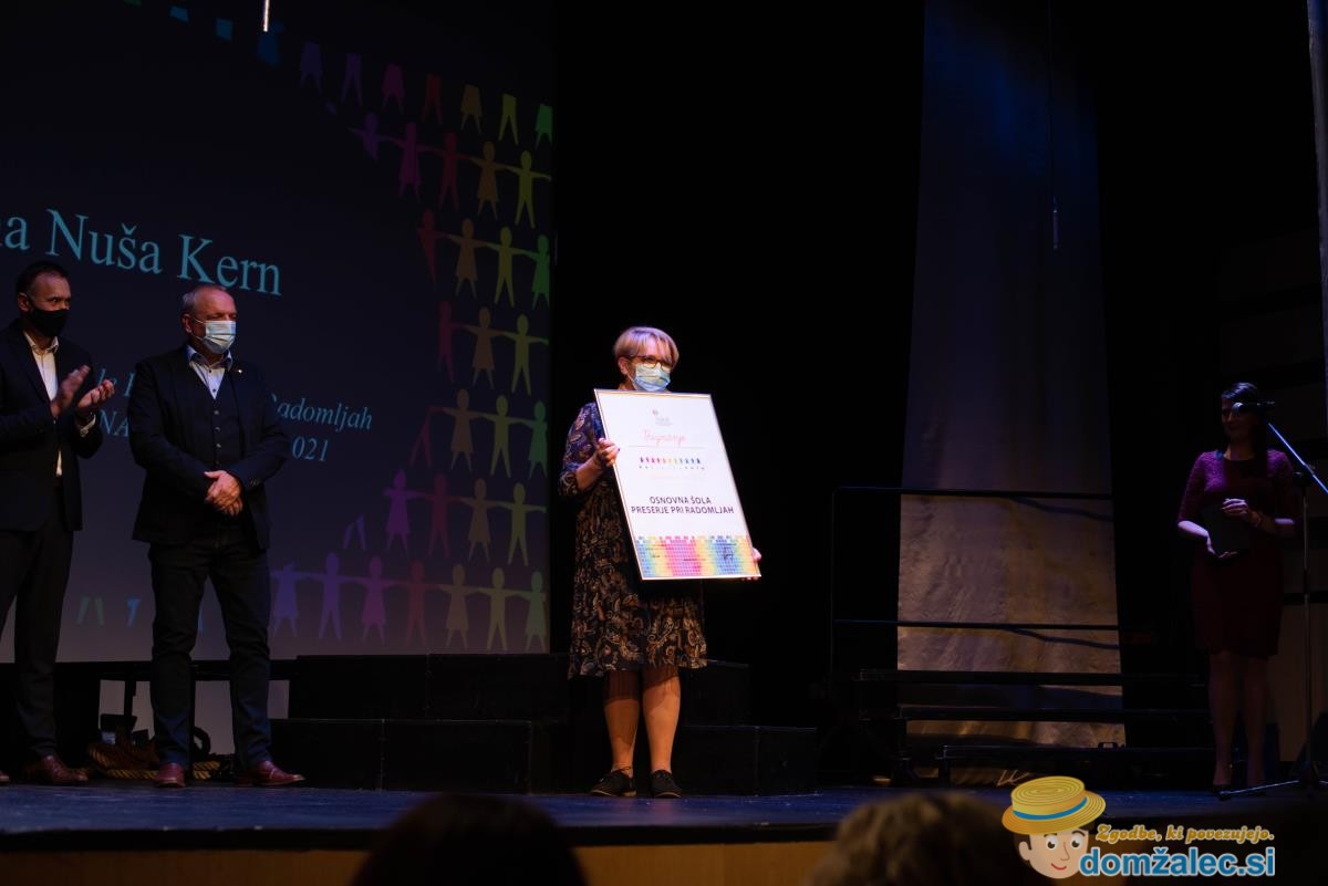 Na oder je po priznanje prišla ravnateljica OŠ Preserje pri Radomljah Ana Nuša Kern, ki je pozdravila navzoče in v svojem nagovoru dodala: »do zadnjega si nismo upali misliti, da bomo dobitniki te nagrade. To, čemur smo priča danes je samo znak, kako slovenske šole ne premaga prav nič in prav tako tudi učenci; ne glede na družbeno stanje, ne glede na to kar se odvija pravkar. V šolah smo zavezani temu, da smo tukaj in zdaj z našimi učenci, in da jim skušamo odpirati različna vrata z različnim znanji. Mislim, da ves slovenski šolski prostor to počne, seveda na različne načine- eni s športom, znanostjo, drugi s kulturo. Verjamem in vem, da je slovenski šolski prostor prežet s takimi entuziasti in da je slovenska šola ena najbolj kvalitetnih v Evropi. Rada bi se zahvalila mojim kolegicam, ki so bile vestne pri arhiviranju in spodbujale učitelje k aktivnemu kulturnemu udejstvovanju«.