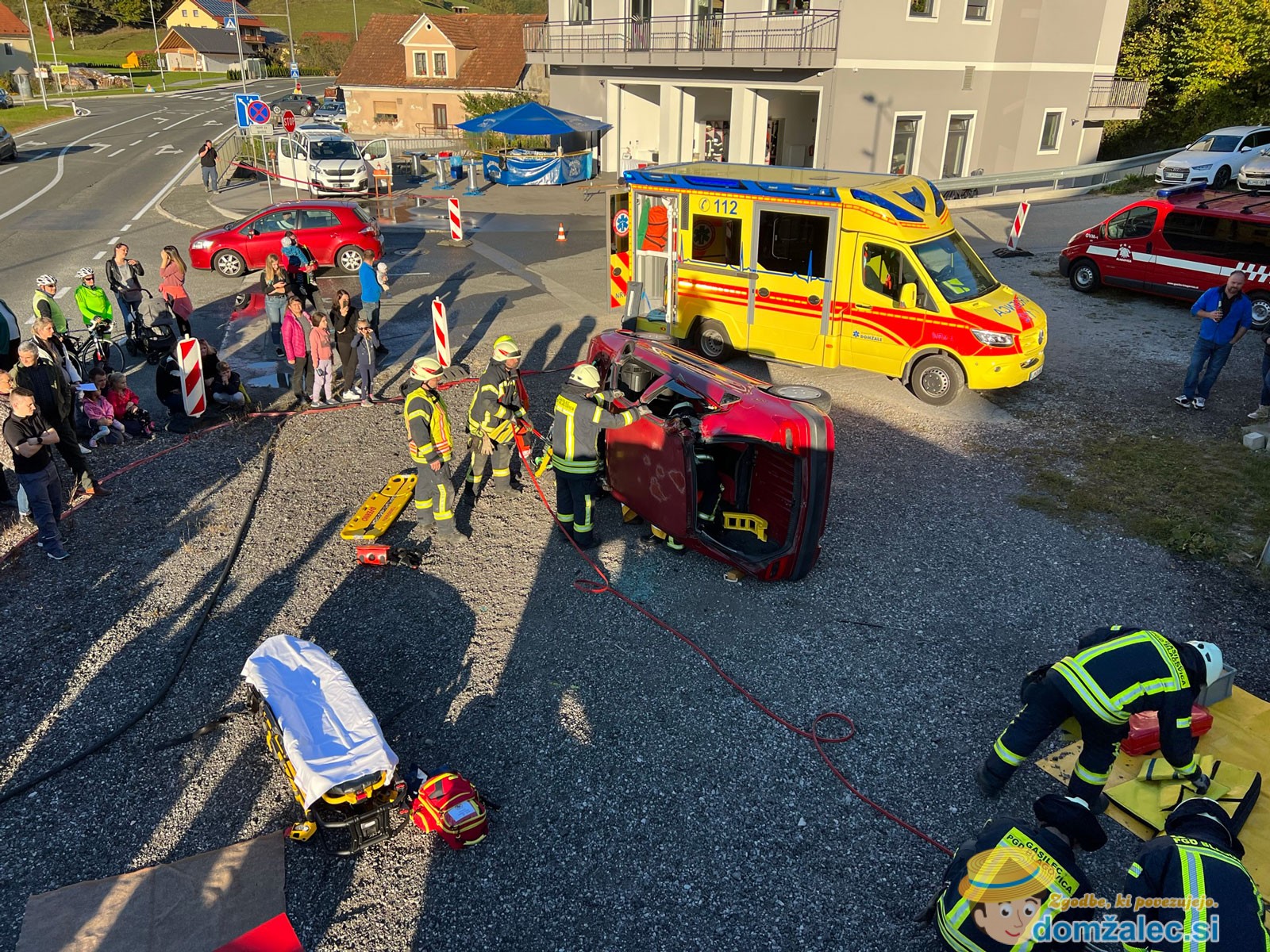 Na koncu uradnega dela, smo izvedli še prikazno vajo, kjer smo simulirali prometno nesrečo enega vozila, ki se je prevrnilo na bok. Na kraj sta prihiteli najprej enota PGD Blagovica, ki je ugotovila, da je v vozilu ena ponesrečena oseba in takoj začela z tehničnim posegom. Kmalu zatem je na kraj prihitela še enota NMP Domžale, katera je poskrbela za ponesrečeno osebo in jo odpeljala v nadaljno obravnavo.