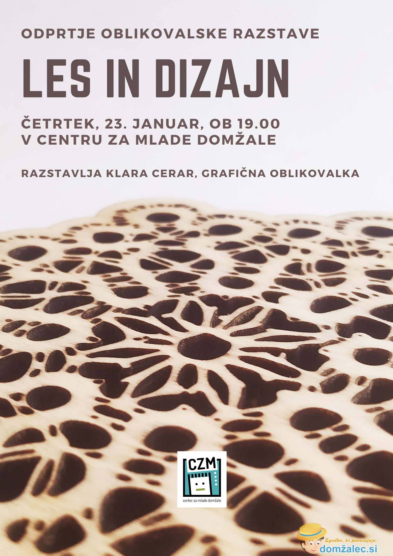 Januar pa bo tudi ustvarjalno obarvan. Poleg naših rednih sredinih ustvarjalnih delavnic in delavnice izdelave lovilca sanj, bo v četrtek, 23. januarja 2020, ob 19. uri. odprtje oblikovalske razstave Les in dizajn. Odprtje razstave bo potekalo Centru za mlade Domžale. Razstavlja Klara Cerar, grafična oblikovalka (klarArt).