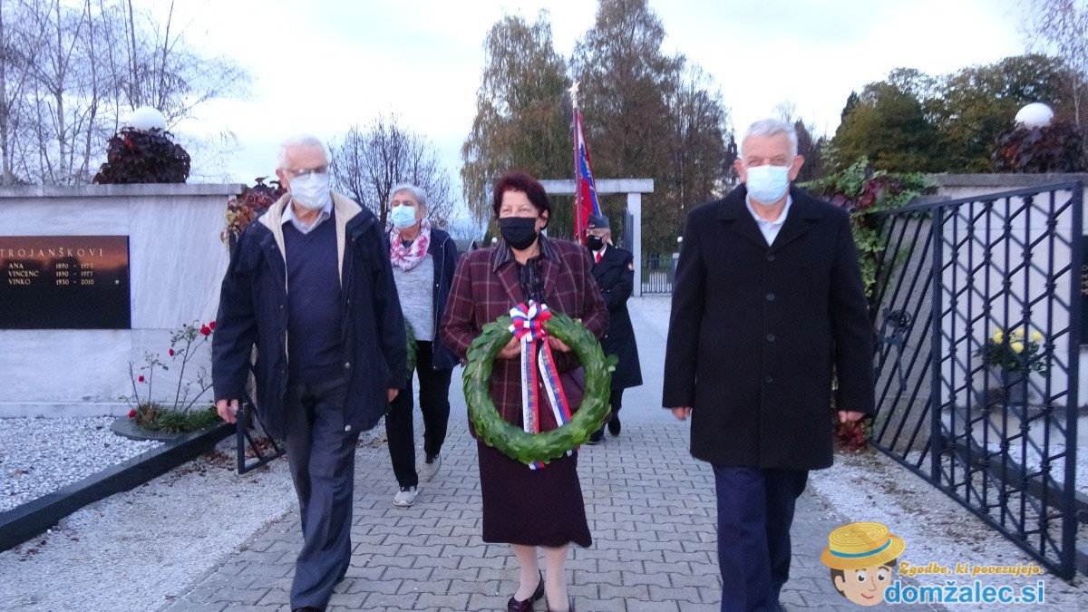 Delegacija krajevnih organizacij Združenja borcev za vrednote NOB Venclja Perka, Simona Jenka in Slavka Šlandra je v petek, 30. oktobra 2020, pred dnevom spomina na mrtve položila vence in prižgala sveče pred osrednjim spomenikom padlim borcem in aktivistom NOB v centru Domžal, na domžalskem osrednjem pokopališču ter na grobu njihove članice Jožice Polanc, ki je preminula letos spomladi.
