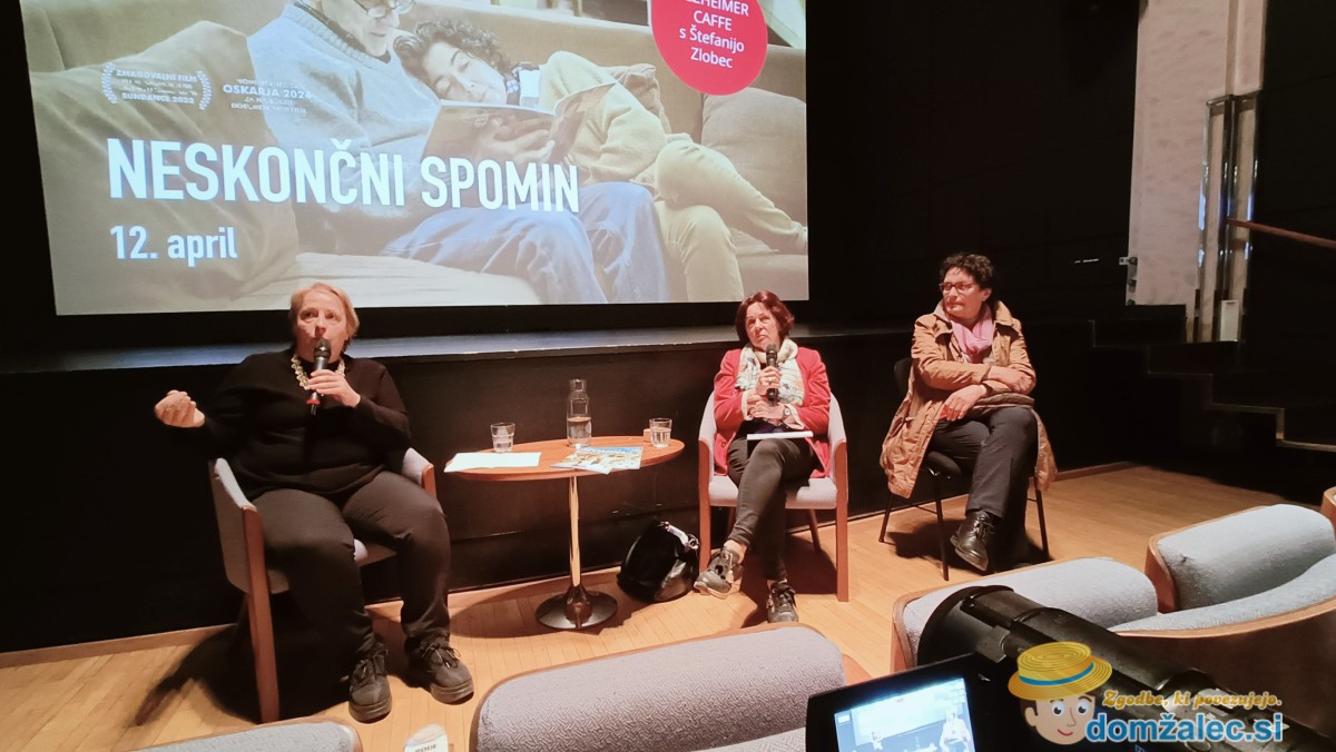 Po projekciji se je o filmu in problematiki, povezani z demenco, Cveta Zalokar pogovarjala s predsednico slovenske Spominčice Štefanijo Zlobec, pogovoru pa se je pridružila tudi dr. Zdenka Čebašek Travnik, dr. med. spec. za psihiatrije in članica Strokovnega sveta Spominčice Alzheimer Slovenije.