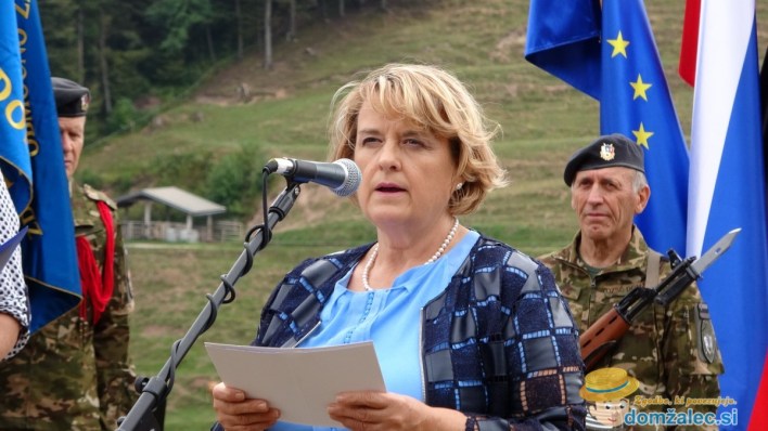 Sledil je slavnostni govor županje Občine Lukovica mag. Olge Vrankar, ki se je dotaknila zgodovinskega dogajanja izpred 79 let, ko je bila na Šipku nad Blagovico 6. avgusta 1943 ustanovljena udarna brigada Slavka Šlandra, v zavetju prostranih gozdov, ki so postali neprebojni objem partizanskega gibanja, upornikov proti barbarskemu nacizmu z načrtovanim izbrisom naroda. Borci so v nečloveških razmerah verjeli v zmago pravice in v nov, boljši svet. Partizanske enote so postale priznani del zavezniških sil, ki so po šestih letih z milijonskimi žrtvami zlomile imperialistično os. “Prav je, da se spoštljivo priklonimo žrtvam, ki so zajete v njihovi osebni tragiki in v tragiki slovenskega naroda, ki zdaj v novem tisočletju gradi svojo identiteto na vrednotah zahodne civilizacije. Te vrednote naj prežarjajo našo samozavest, ponos in pogum za nepredvidljive čase, celo sedaj, ko je na pragu Evrope spet slišati strele in eksplozije, s povsem novimi problemi preživetja in neznanimi preizkušnjami. Poklonimo se slovenskim vasem, samotnim gomilam, vsem obeležjem, kjer se je nasilno pretrgalo mlado življenje, s pietetnim trenutkom tišine,” je med drugim povedala županja mag. Olga Vrankar.