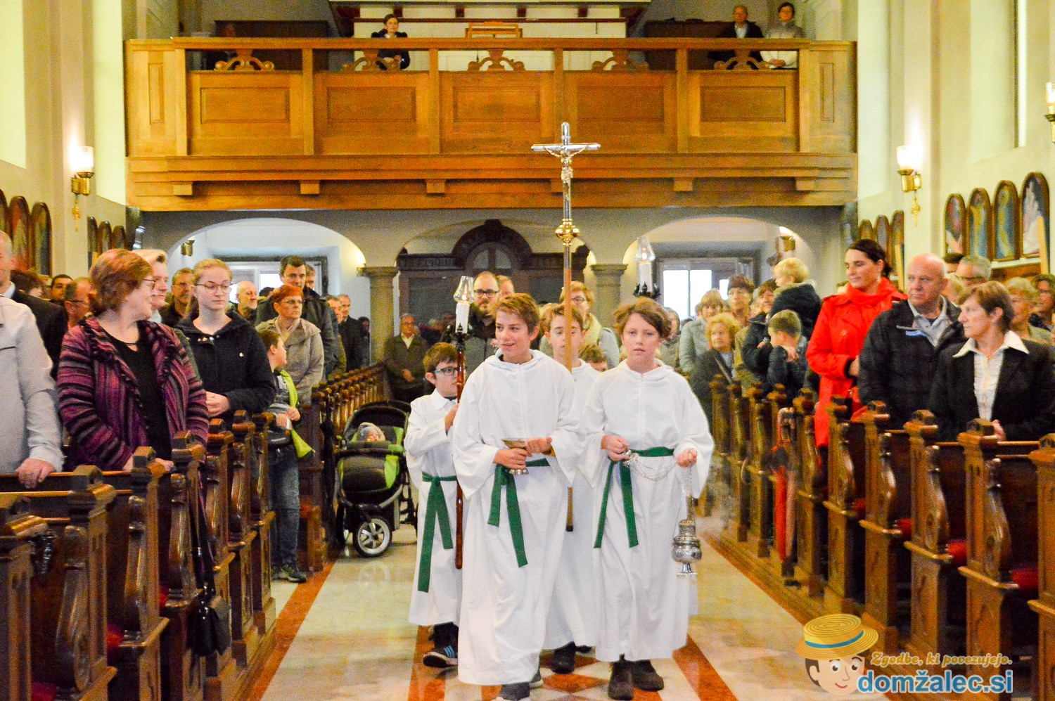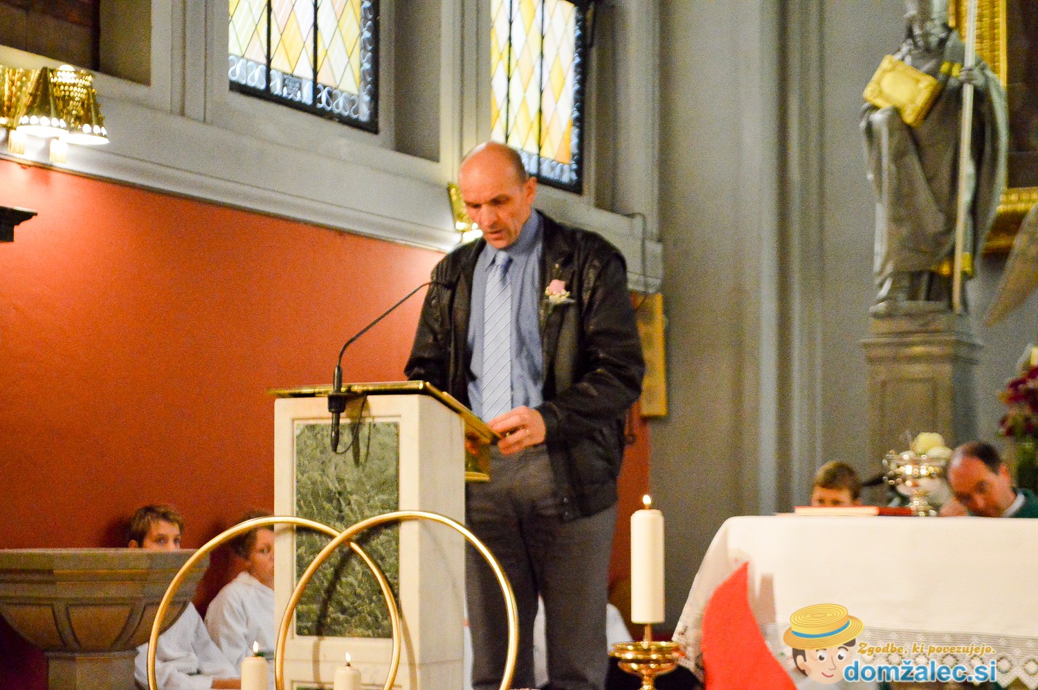 Obred svete maše, ki jo je daroval domžalski župnik mag. Klemen Svetelj, je bil namenjen poglobljenemu doživljanju pomena krščanskega zakona in družine. Pevci družinske kateheze so se izjemno lepo potrudili z izvedbami pesmi, ki so bile še posebej izbrane za ta slovesni dogodek. V celotni skupini trinajstih parov jubilantov so udeleženci praznovali od 5-letne pa vse do 55-letne skupno prehojene zakonske poti. Ob pogledu na zakonske pare, ki so praznovali zakonski jubilej, smo dobili neko notranjo potrditev, da je danes živeti zakonsko družinsko življenje vrednota in bogastvo, ki se poplačuje z drobnimi trenutki in darovi. Ob tem zavedanju, da so tako prejeti darovi kot samo premagovanje drobnih in malih pasti vsakodnevnega življenja veliko lažje premagljivi v zakonu, še posebej če v svoj zakon in družino povabimo Boga in živimo krščanske vrednote. S tem zakonci opravljamo v prvi vrsti katehetsko poslanstvo znotraj družine in postavljamo svoj vzor za sedanje in prihodnje vrednote in usmeritve naših otrok.