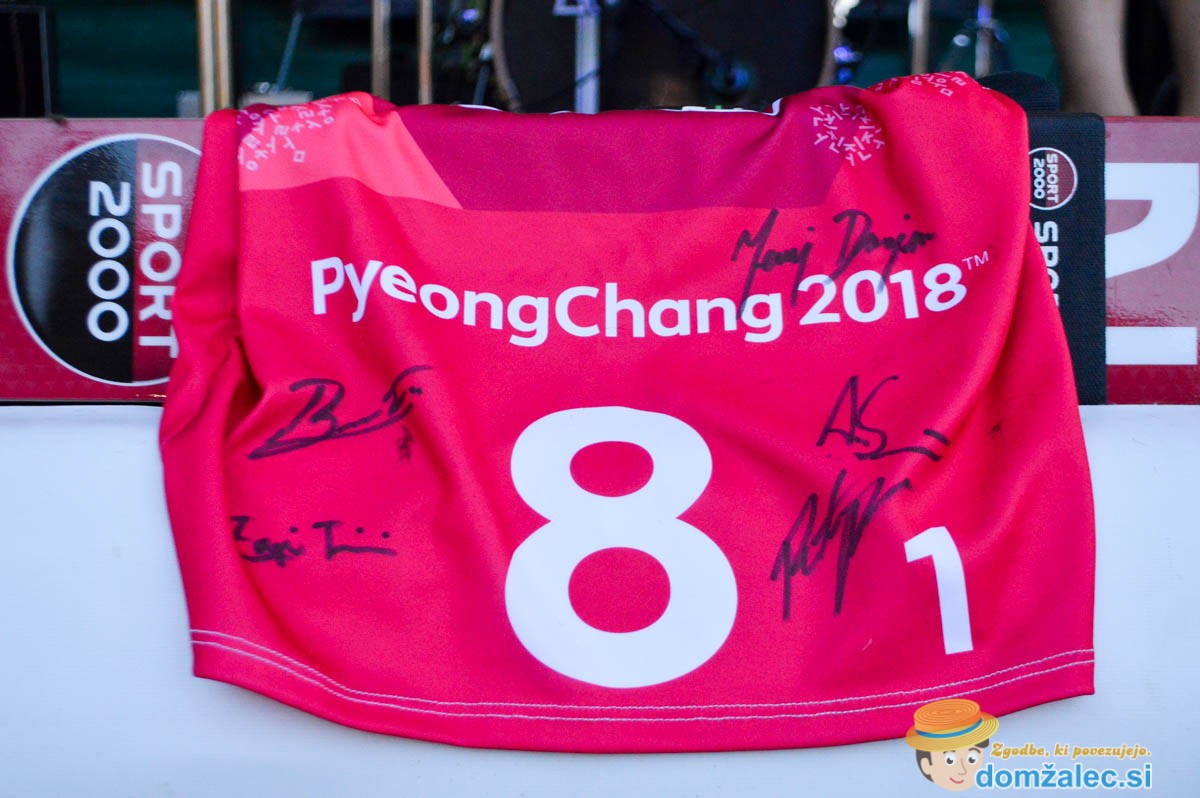 Vrhunec prireditve je bila dražba predmetov, ki so jih v ta namen izročili najboljši skakalci kluba Jernej Damjan, Tilen Bartol in Jure Šinkovec, ki so bili seveda prisotni tudi na prireditvi. Jernej Damjan je v namen dražbe izročil svojo startno številko s podpisom slovenskih smučarskih skakalcev na Olimpijskih igra 2018 v Pyeongchangu. Prav tako je izročil tudi svoje srečne smuči s podpisom. Tilen Bartol je podaril podpisano čelado, ki ga je spremljala na zadnjih Olimpijskih igrah v Pyeongchangu. Jure Šinkovec pa je podaril podpisane smuči iz zgodovinske zmage v Oberstdorfu leta 2012. Na dražbi, vsi predmeti so dobili nove lastnike, so zbrali 860 evrov, ki jih bo klub namenil skakalcem, treningom in opremi, saj čutijo, da se trudijo z vsako kapljico potu.
