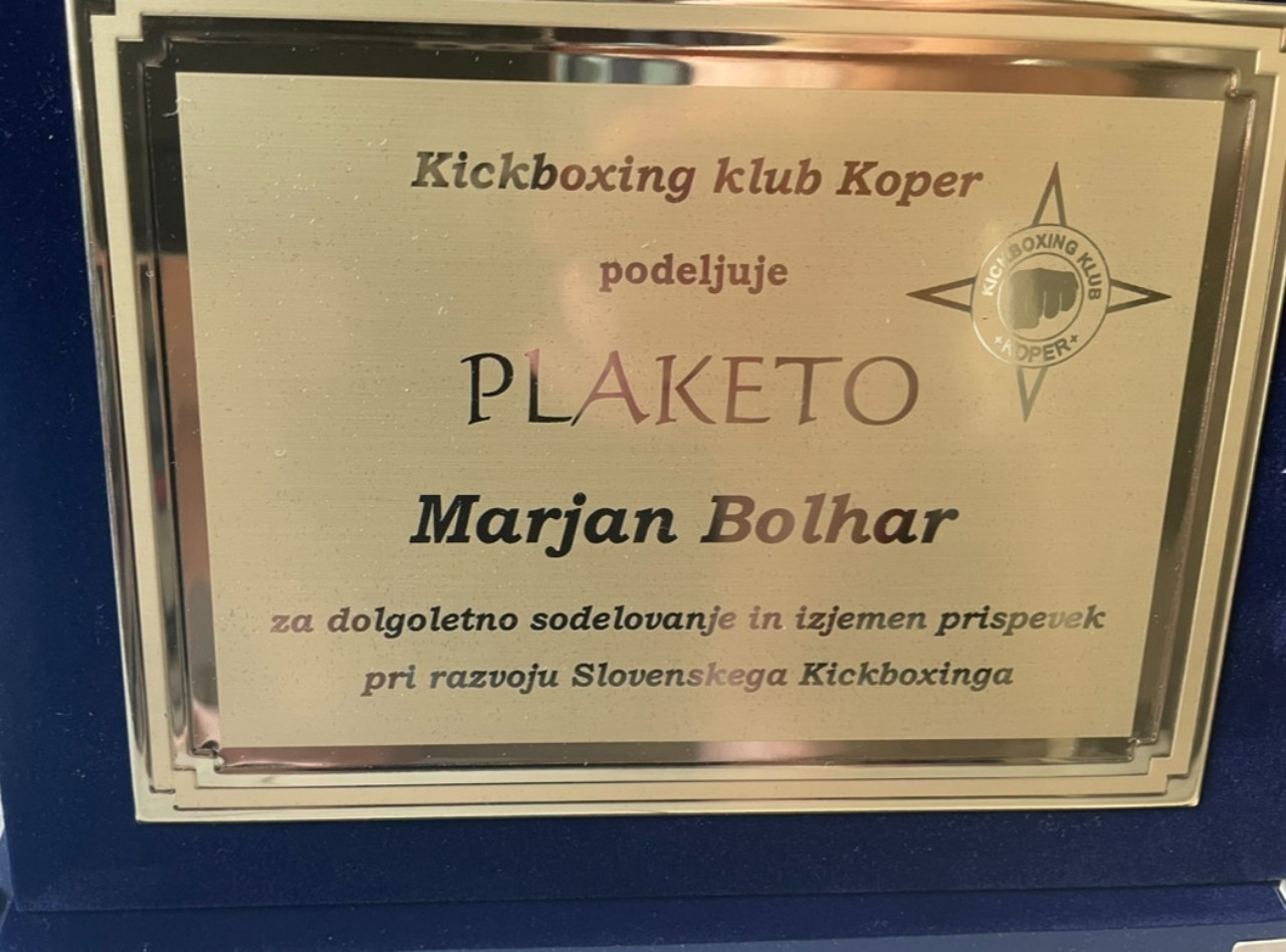 Marjan Bolhar je prejel posebno plaketo za dolgoletno sodelovanje in izjemen prispevek k razvoju slovenskega kickboxinga.