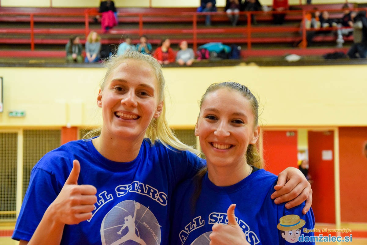 Vrhunec dogajanja na All Stars je sledil ob 19.00, ko sta se na tekmi zvezd pomerili ekipi Svetlih in Temnih, ki so jih zastopale najboljše članske igralke v sezoni 2017/18. Tako kot prejšnje leto, tudi tokrat ni bilo poražene ekipe, saj je bil rezultat po koncu tekme ponovno izenačen, za kar je z zadnjim košem na tekmi poskrbela igralka Temnih Vesna Sever. Igralke so na tekmi pokazale veliko lepih potez, v katere sta se vključila tudi oba sodnika, ki sta dodatno popestrila dogajanje na parketu, zanimive in zabavne taktične domislice pa sta v ekipi vpeljala oba trenerja. V vrstah članske ekipe so ŽKD Ledita zastopale mlade igralke Pia Zupan, Lejla Rošić in Manca Vesel. Vse tri igralke so pokazale kreativno in lepo igro, kar je tudi namen revialnih tekem. Na dogodku pa smo imeli tudi našo uspešno trenerko na klopi Svetlih, Elvira Rošić Ključanin, ki je bila lansko sezono s svojo ekipo 16 kol neporažena. Seveda so v sezoni 2016/ 2017 osvojile prvo mesto razvojne mednarodne ženske extra lige. Za najboljšo igralko tekme – MVP je bila izbrana igralka Svetlih, Pia Zupan, ŽKD Ledita.