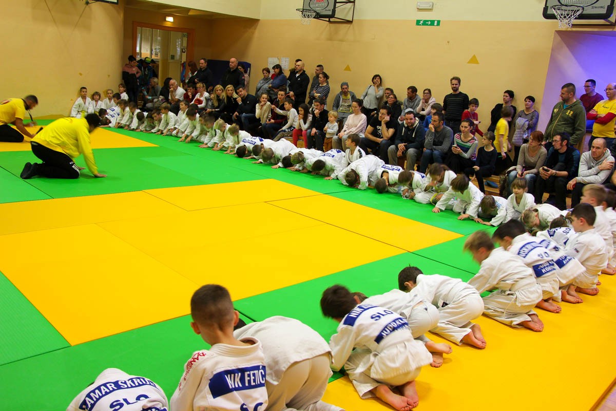 Med ogrevanjem jih je pozdravila tudi Božičkova judo Panda in sprostila napetost in nasmejala prisotne. Najprej so na tatami stopili vrtčevski otroci, ki so se pomerili v sumo borbah – izrivanju nasprotnika iz označenega prostora. Kasneje so osnovnošolci pokazali že prave judo borbe, z meti in končnimi prijemi. Vsi so pokazali veliko poguma in se odlično borili. Vsekakor so si zaslužili kolajno in nagrade za pogum.