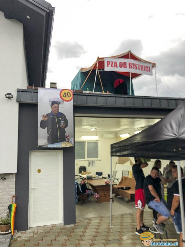 Pa pustimo šalo ob strani. Naj vam zaupamo, da ne gre za novo turistično pridobitev, ki bi bila vsekakor dobrodošla, temveč gre za presenečenje, ki so ga prijatelji pripravili ob 40-letnici Bojana Jovanovića – Blekija, ki bo okroglih 40 dopolnil jutri. Ker se dan začne zjutraj, se je druščina pri njem zbrala že ob 7. uri zjutraj, tja pa se je večina pripeljala z avtodomi, ki so jih parkirali na bližnjem travniku, kjer bo sedaj 40 dni PZA – Parkirišče za avtodome. Ker je Bleki podjetnik, ki se ukvarja s temnenjem stekel in digitalnim tiskom, so prijatelji njegovo hišo na Umekovi ulici na Viru dodatno opremili s transparenti, da se tam po novem nahaja tudi PZA ob Bistrici, na streho garaže pa so postavili še šotor z napisom, da se že od daleč vidi, za kaj se gre tam po novem.